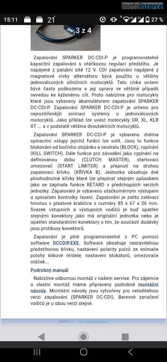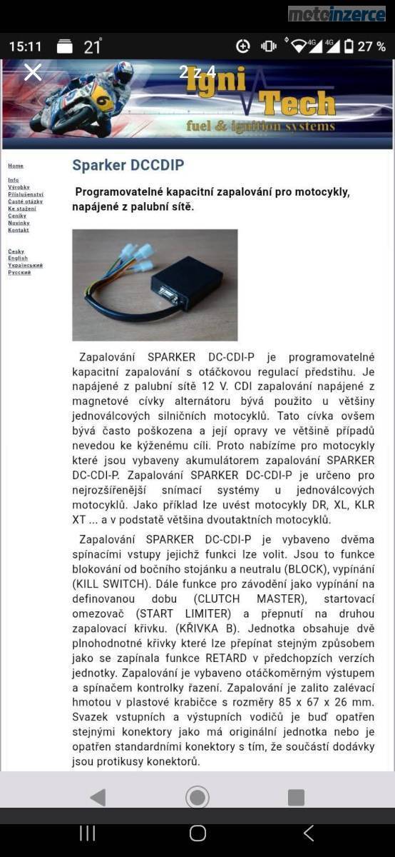 Programovatelná řídící jednotka (zapalování) pro jakýkoliv jednoválec. Nejlepší způsob jak vyřešit problém s originál CDI na jakémkoliv starém kladivu například Husqvarna te…, Kawasaki klr…. Suzuki dr… a tak dále. V případě zájmu volejte rád vysvětlím podrobnosti.