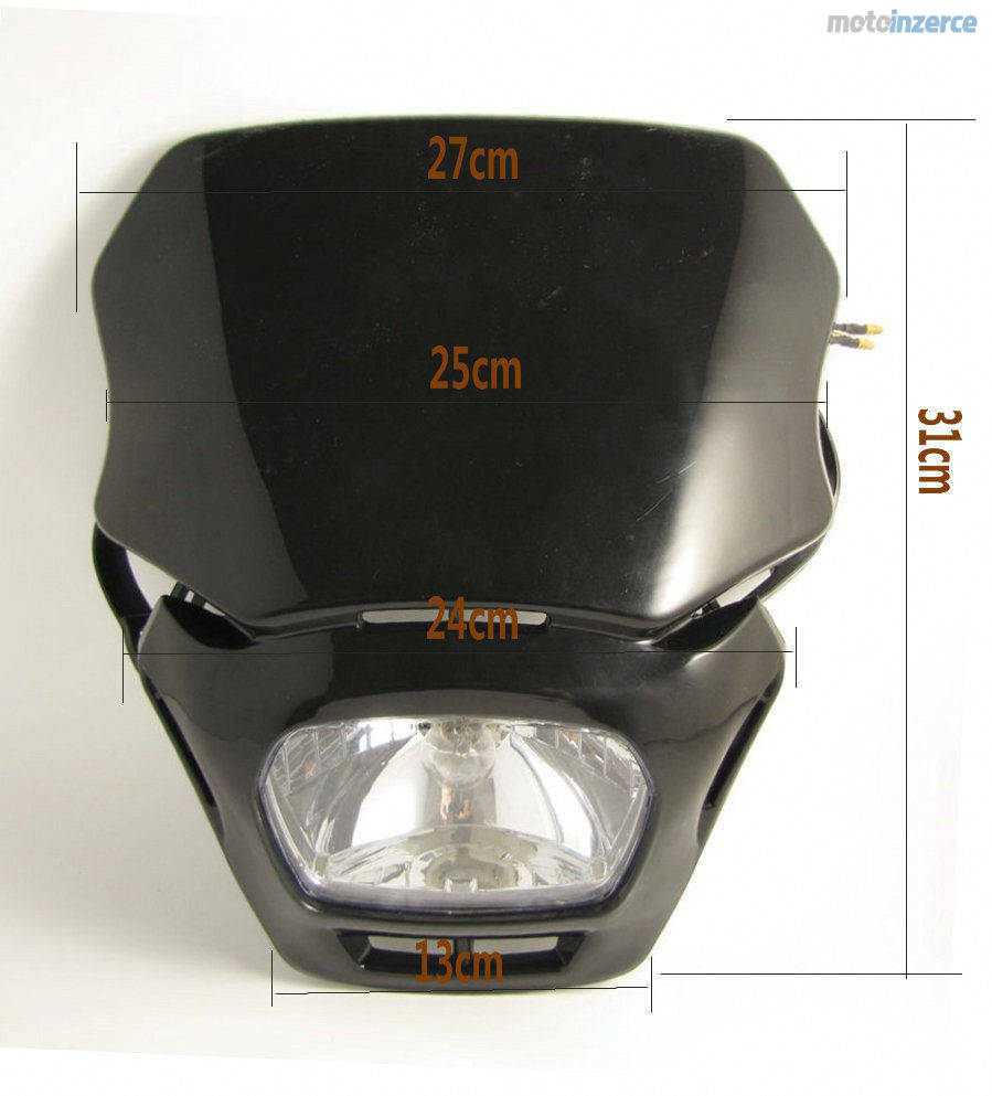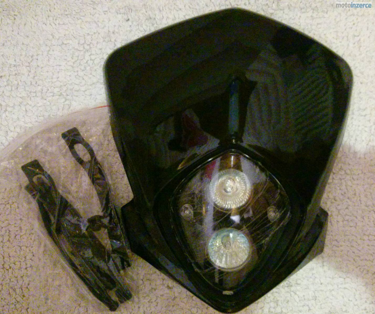 Prodám přední masku se světlem pro motocykl. Maska s dvěma čočkami za cenu 900 Kč Barva černá