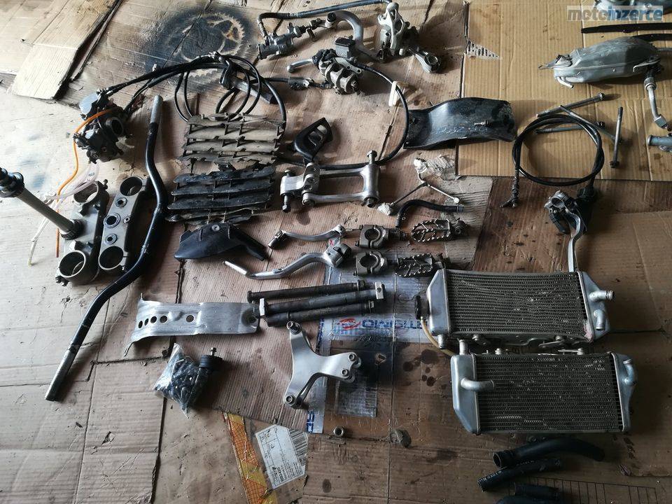 Plasty, nadrz, podsedlovka, ram, koncovka vyfuku, 1ks karteru, kryty chladicu, zapalovani, cast prevodovky, spojka, klikova hriel, klemy riditek