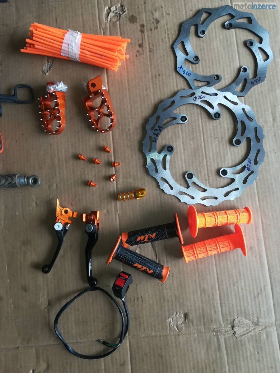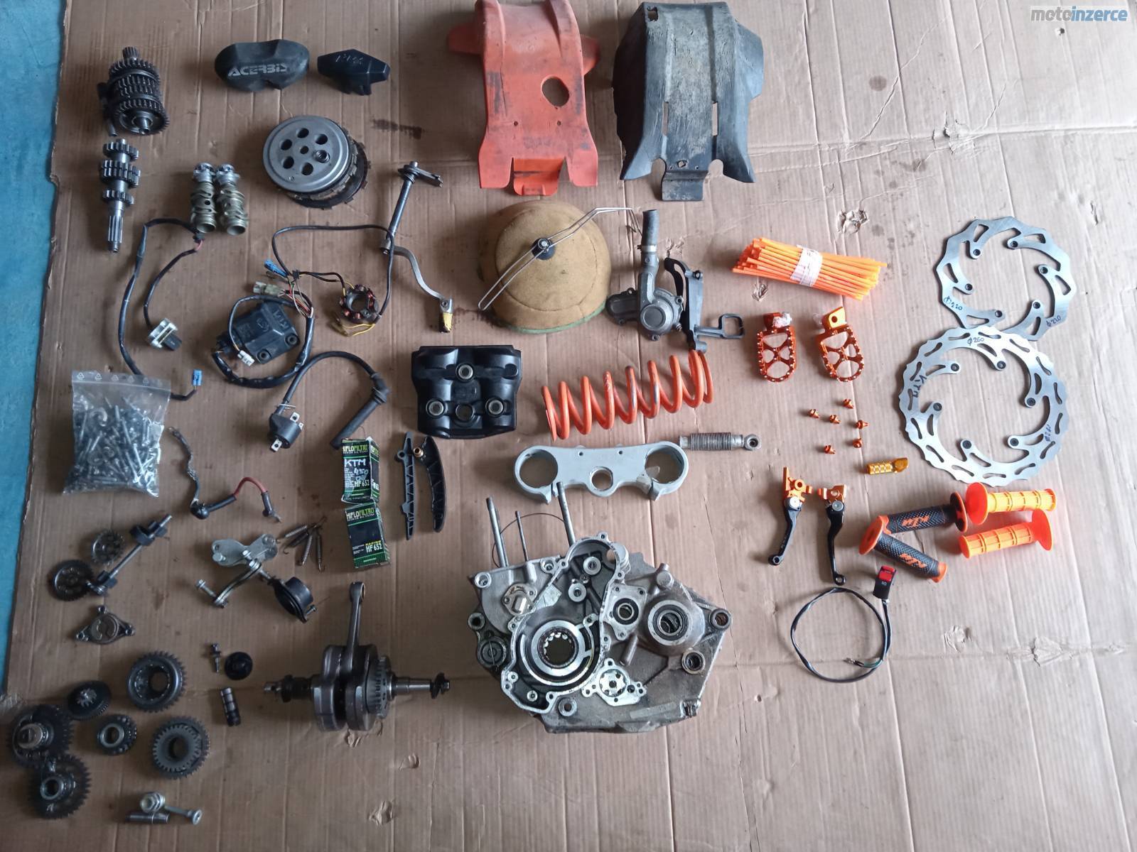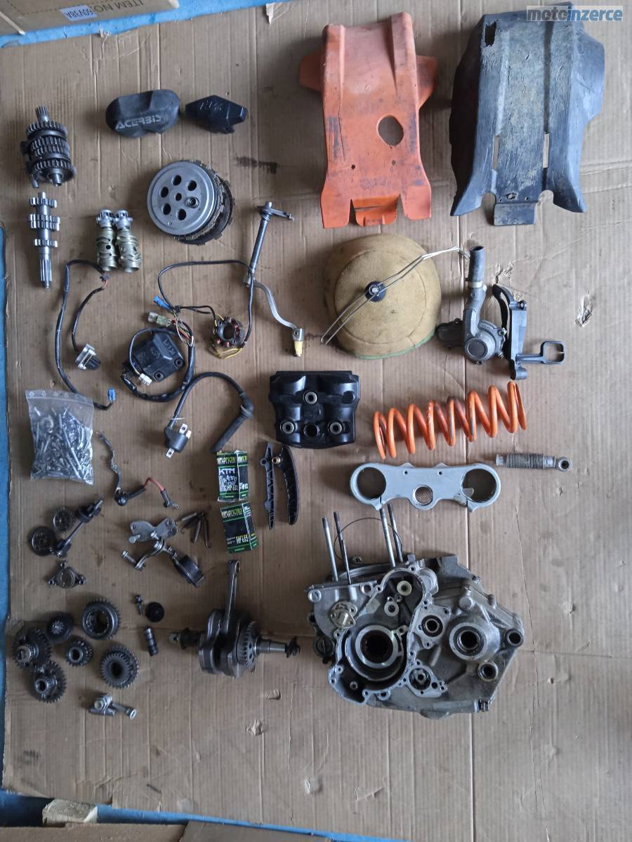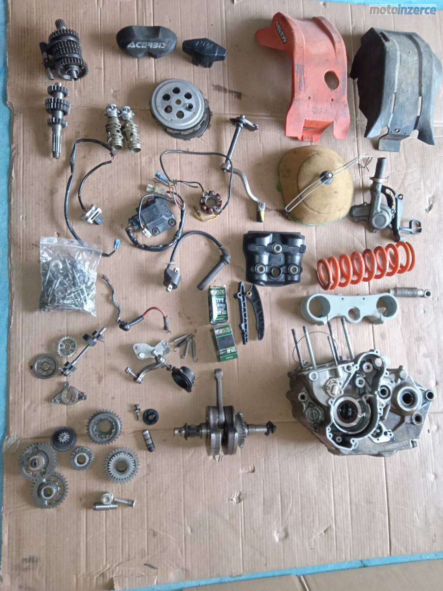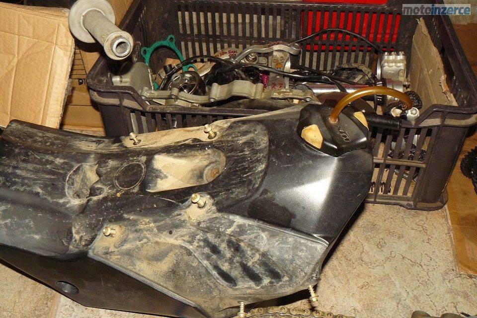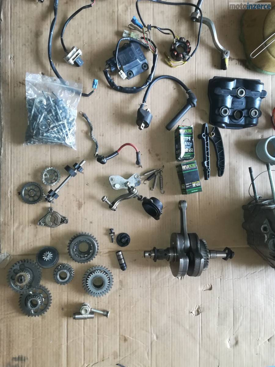 Kartery, klikova hridel, olejove cerpadlo, napinak rozvodu, cast prevodovky, zapalovani, CDI, fajka s induckou, odka radici paky radici paka, přitlačny talir spojky a lamely, olejove filtry, voditka rozvodoveho retezu, viko ventilu, viko vodni pumpy, pruzina centralniho tlumice, vrchni cast bryli,,brzdove kotouce, stupacky nove, lamaci packy nove, gripy