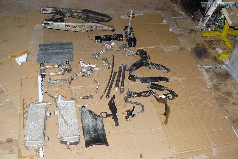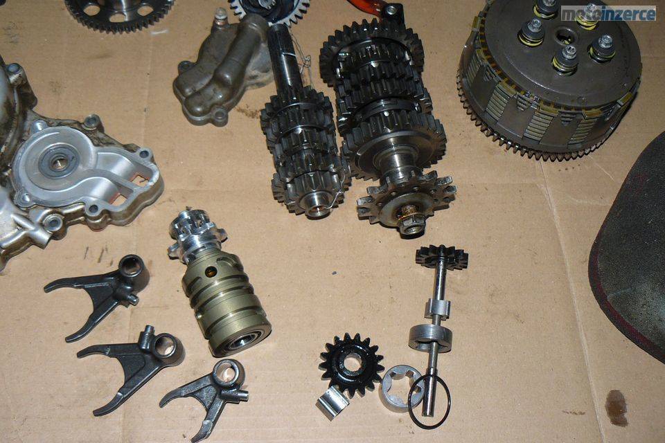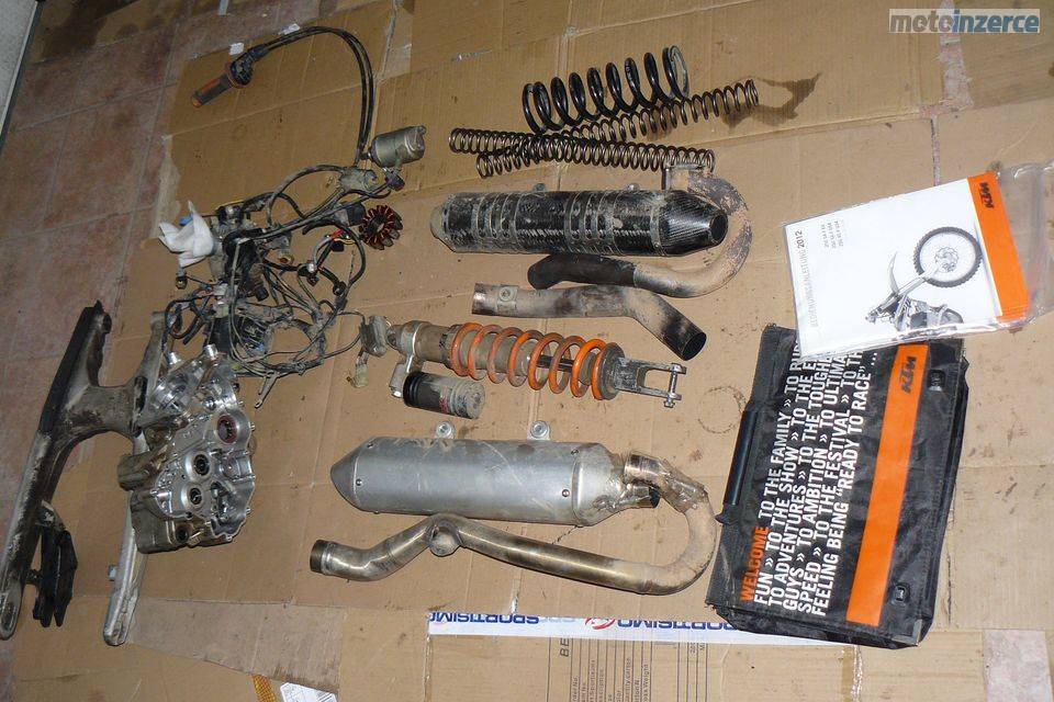 Ram, kyvna vidlice, pruzin tlumicu, koleno vyfuku, dily na foto