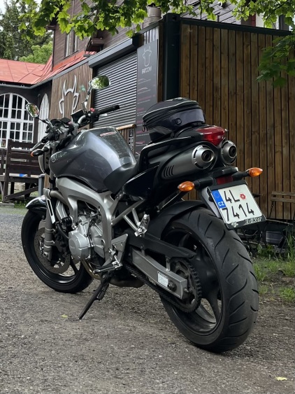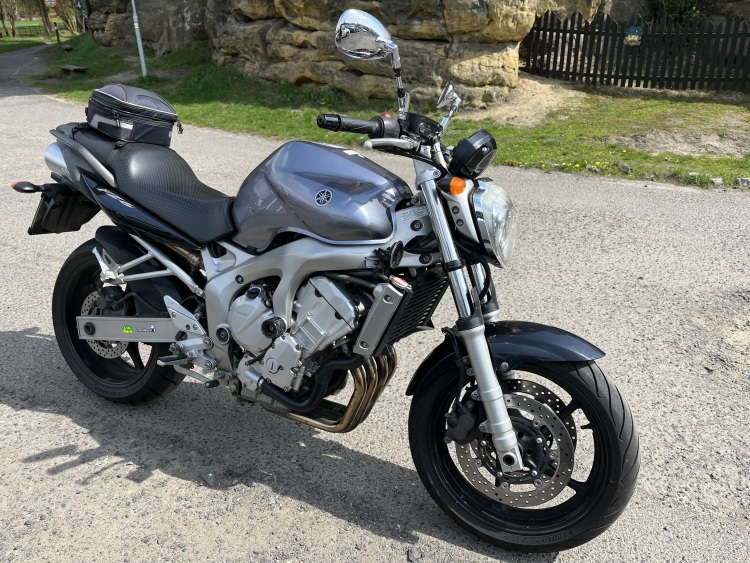 Fazer má nálepku želvy 46 a okruhářů dole u řetězové sady, obouchané padáky a škrábance na levé části nádrže, zrcátkách.. jinak stále jako nová.