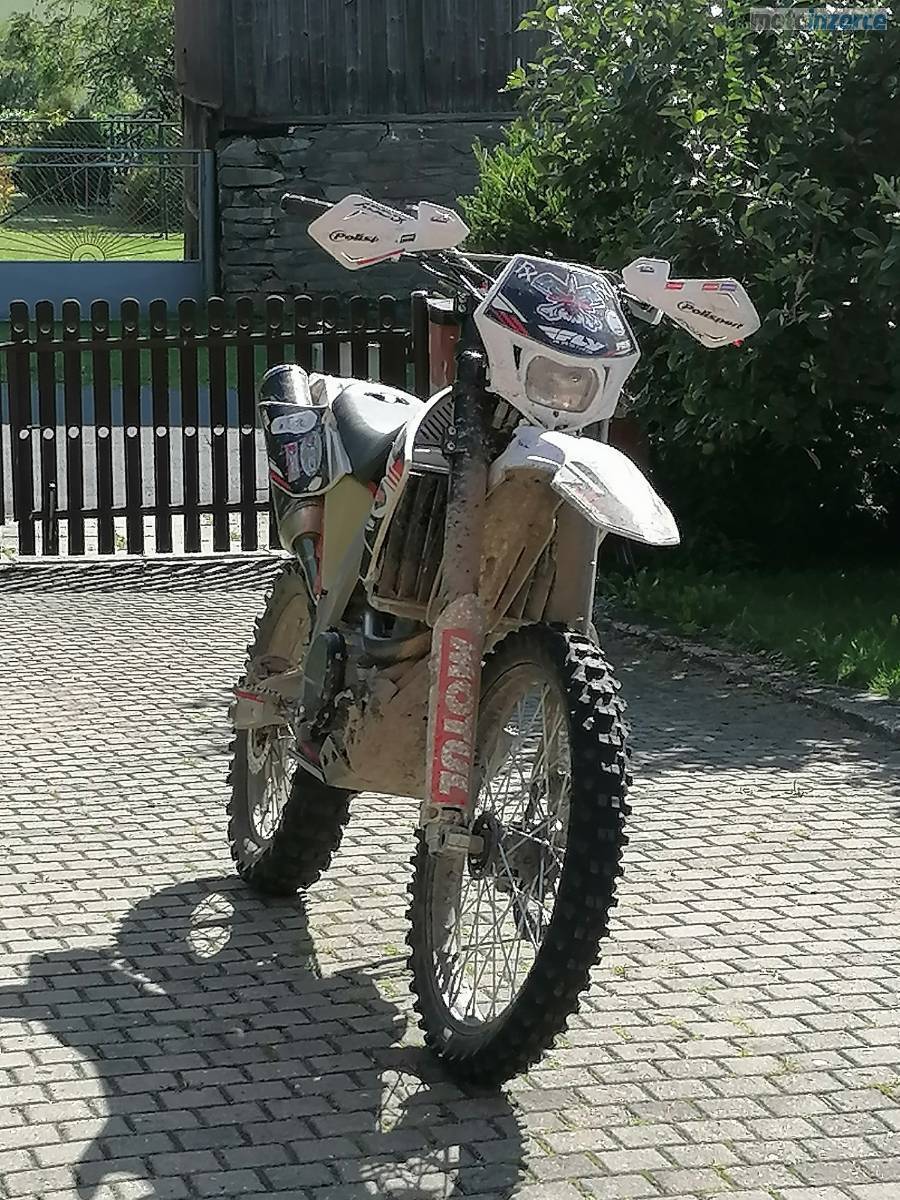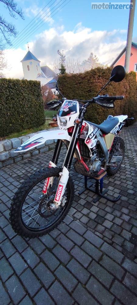 Prodám enduro AJP PR5 jeté hoby jezdcem se dvěmi komplet sadami kol (pneu MITAS EF07, kotouče i rozety) a další spoustou náhradních dílů orig. použitých i nových a výbavou pro jezdce, hadry, boty, brýle rukavice aj. Moto je oproti sérii vybavena hydr. spojkou Magura a sníženým sedlem (ne podvozkem) pro menší postavy. Moto ve velmi dobrém stavu, nová gelová AKU, STK udělám při prodeji, jinak dělám až po zimě. Nyní přípravena s homolog. díly.