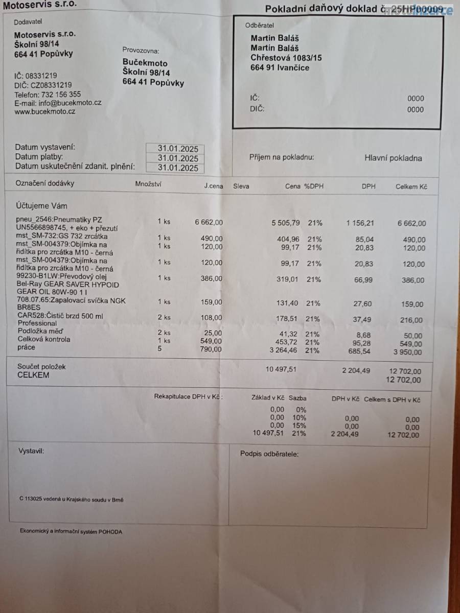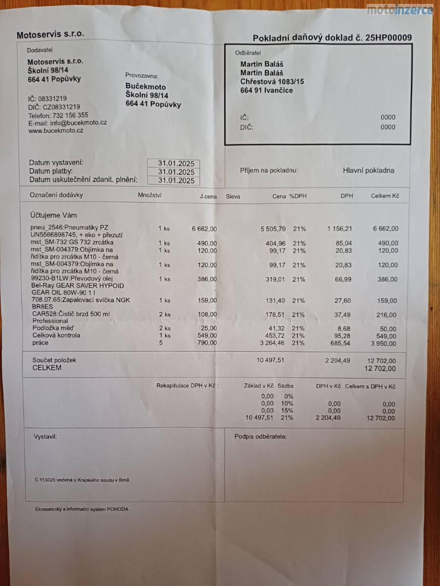 Prodám Aprilia SX 50, r.v. 10/2015, stav km 15.600, koupena v 1/2025 v AT s 15.200 km pro syna, následně udělaný servis + nové pneu za 12.700, Kč (viz. faktura). Bohužel nevyužitá = důvod prodeje. Aprilka je "otevřená", max 85km/h, funguje velmi dobře a bez problémů.