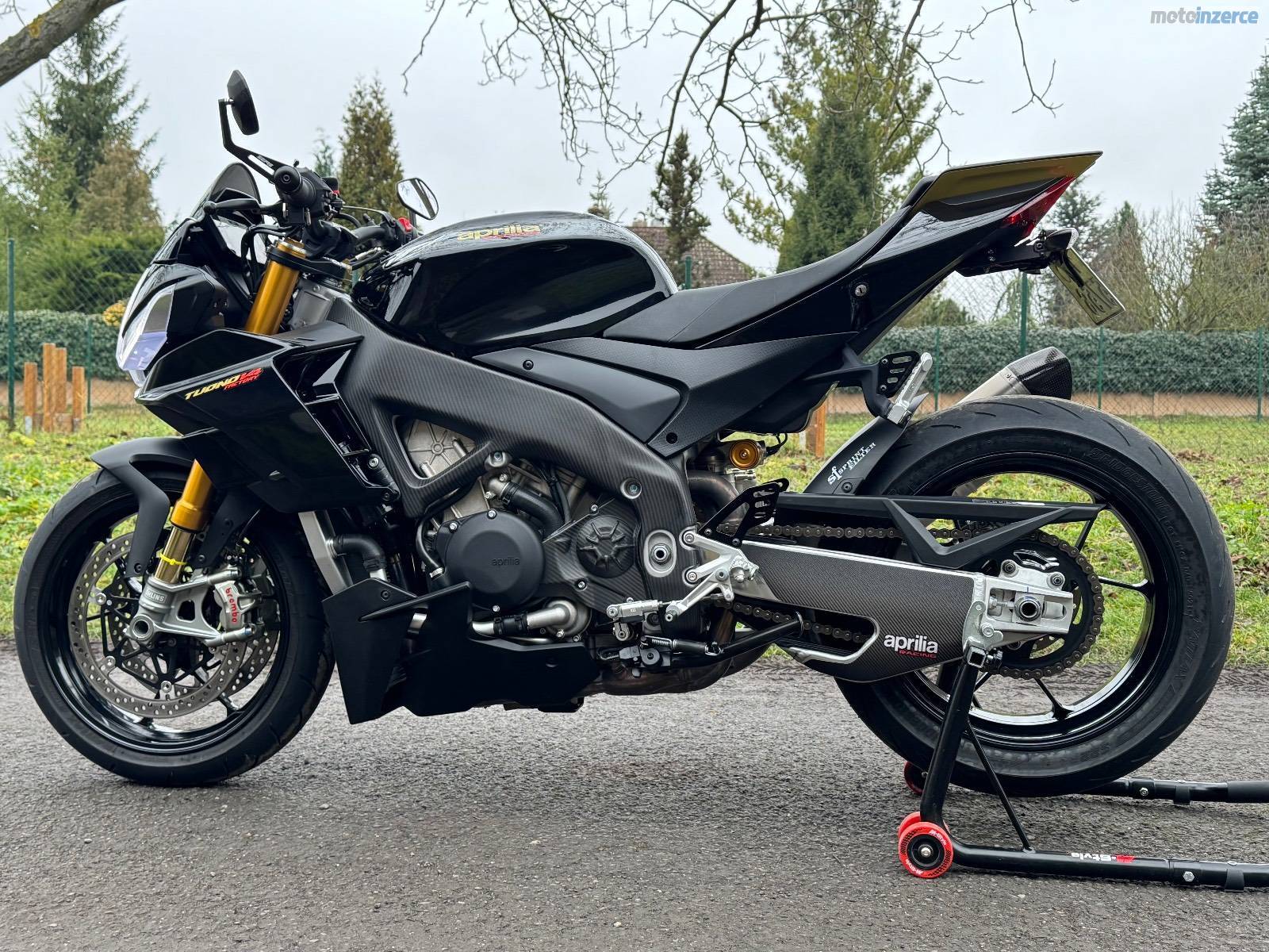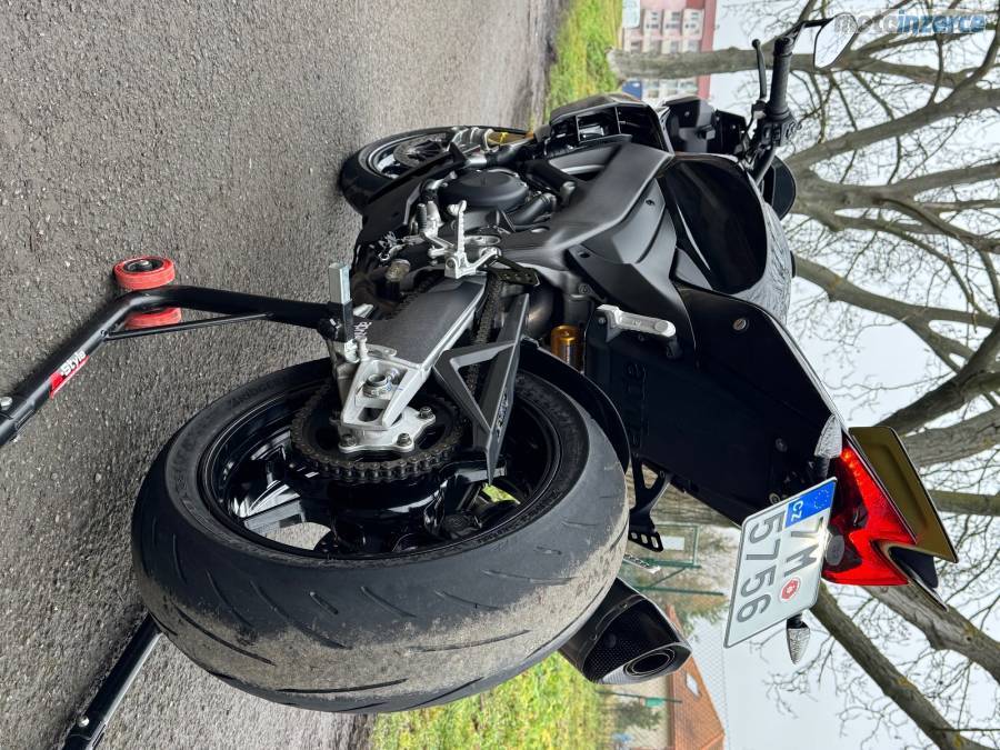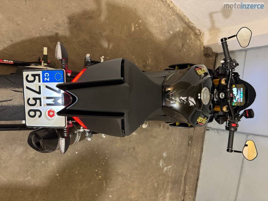 Dobrý den, prodám svoji motorku nabušené Tuono. Motorka koupená nová v Dmoto. Jediný majitel nyní najeto aktuálních 16800 km. Rok výroby 11/2023. Motorka poctivě zajetá a servis v Aprilii kde je řádně vedená výměna oleje. Olej měněn po 4 tis. km tudíž teď má na olej najeto pouze 800 km. Tuono po zajetí dostalo výfuk, filtr a mapu + odbržděno na brzdě v DNX. Tuono má 185 PS. Jede nádherně a je absolutně bez investic. Ještě jsem nasadil přední pumpu RCS 19 a desky Brembo Z04 brzdím prstem. Rám dostal carbonovou ochranu plus kryt řetězového kolečka Carbon přímo z Itálie. Tuono má navíc nabíječku USB a Mio jednotka Aprilia + krátký držák SPZ a zrcátka v řídítkách. Podvozek po servise Halbich Ohlins. Foto aktuální Top stav!!! Orig. díly jsou samozřejmě k motorce. Foceno dnes. V případě zájmu prosím volejte, děkuji.
