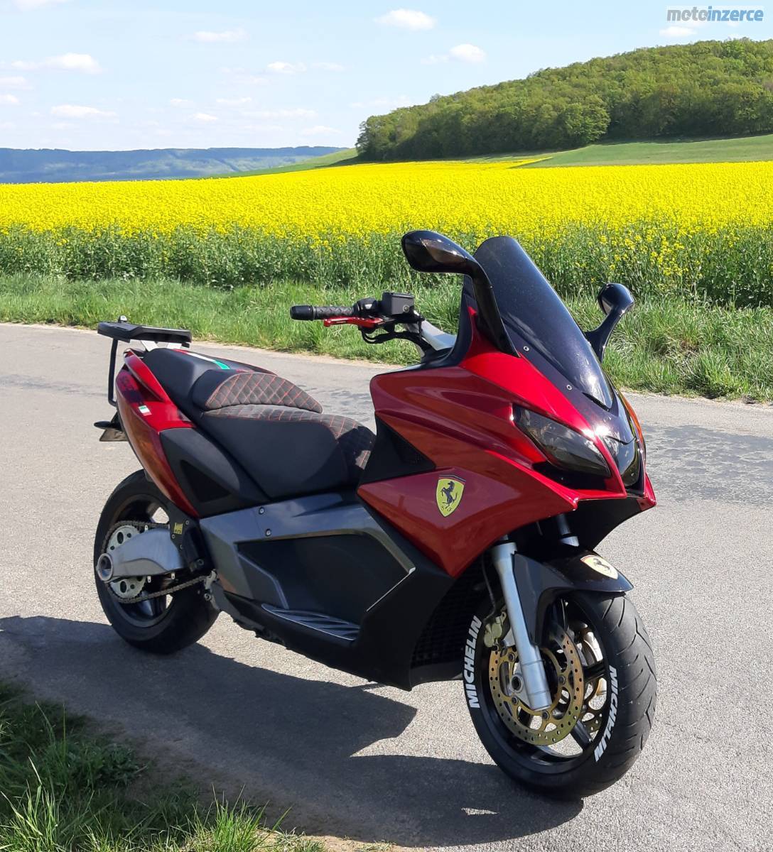 Prodám krásný maxiskutr. Nové pneu, zadní box, lak na zakázku odstín Ferrari Maranello, sedlo Alcantara kůže. Všude budí pozornost.