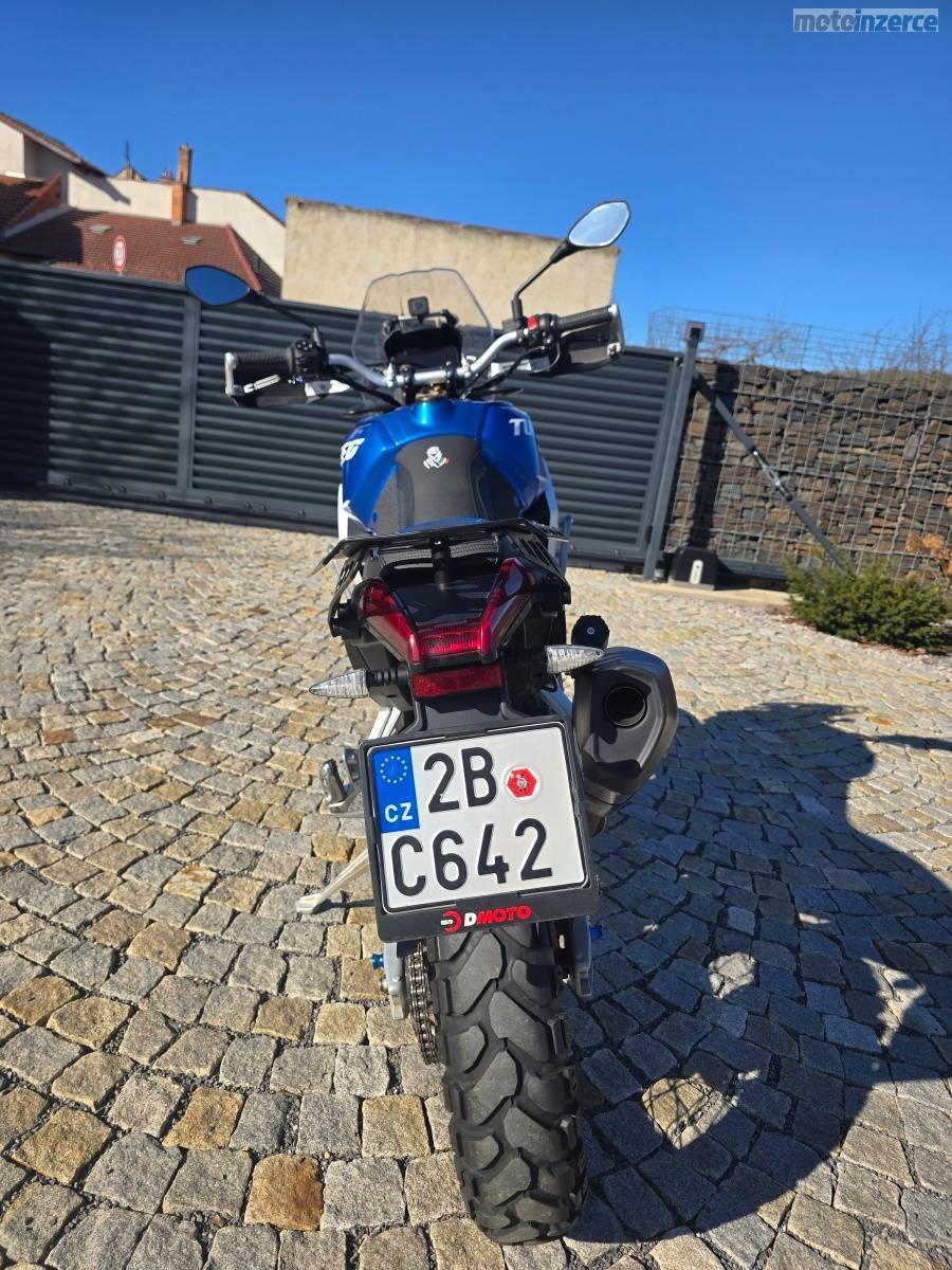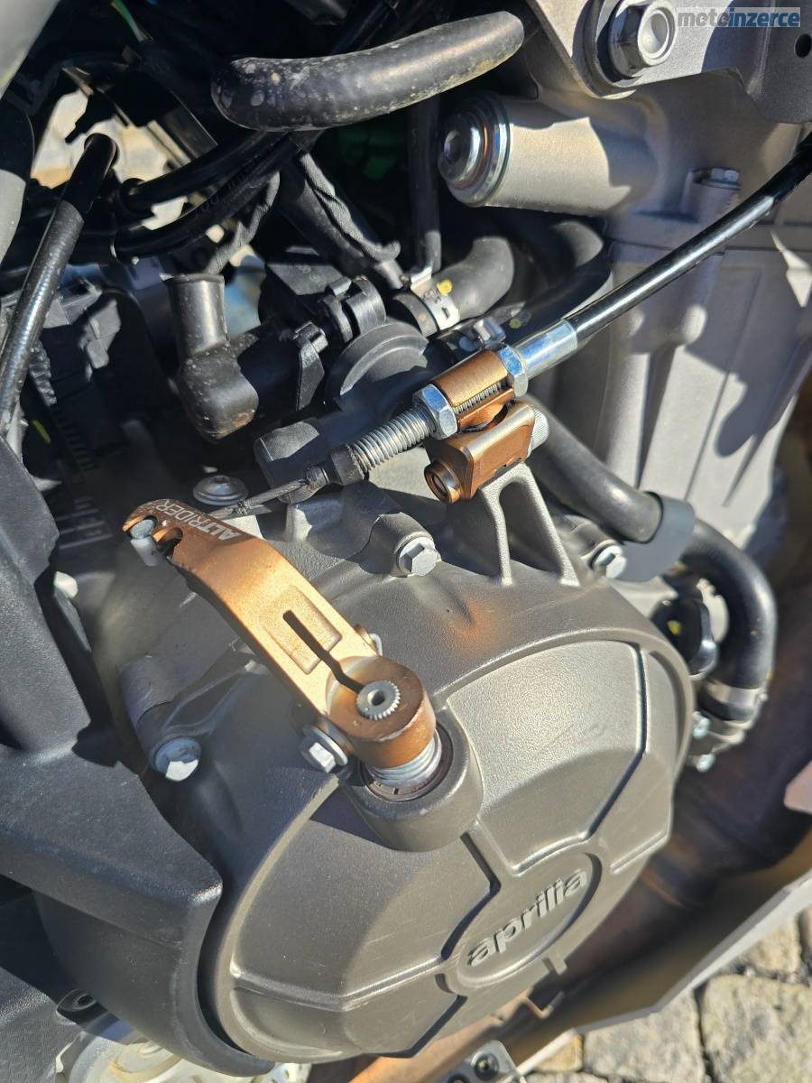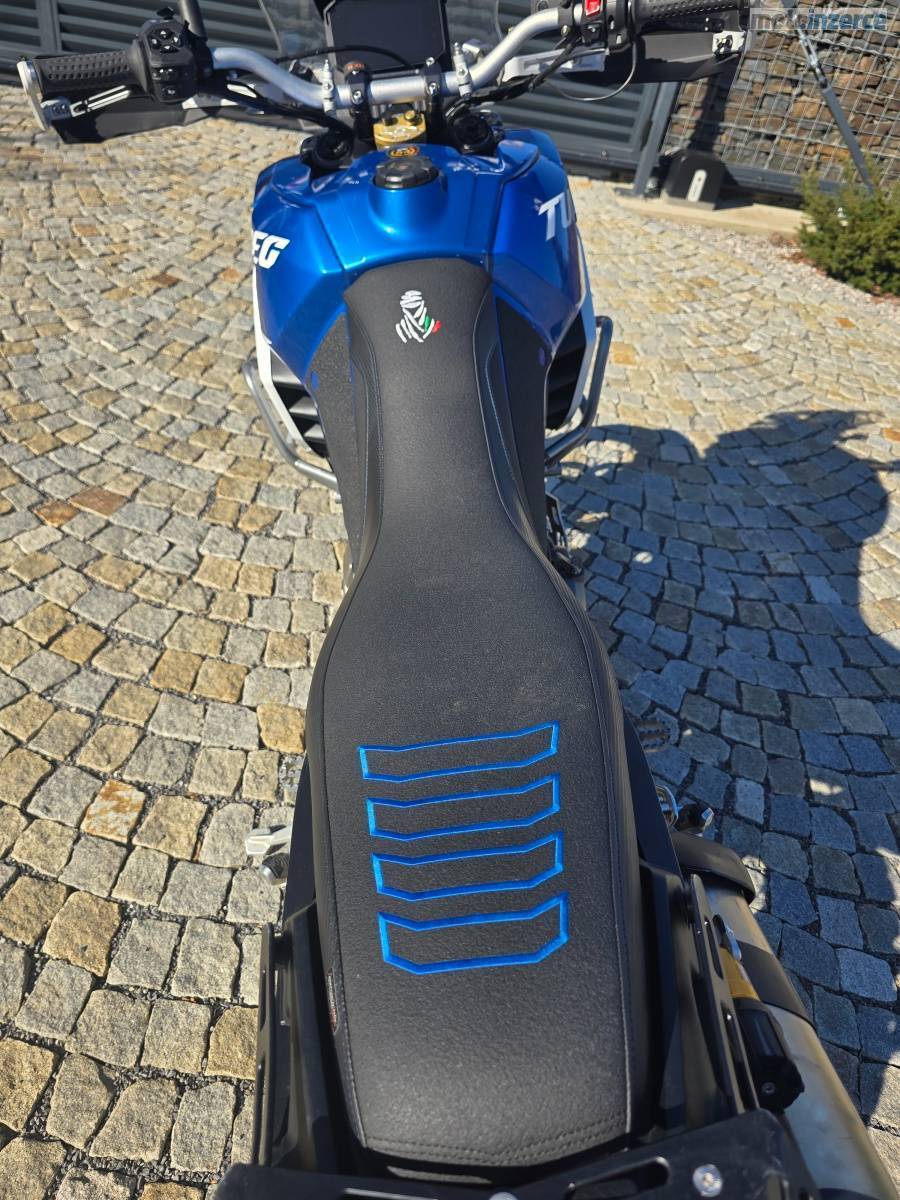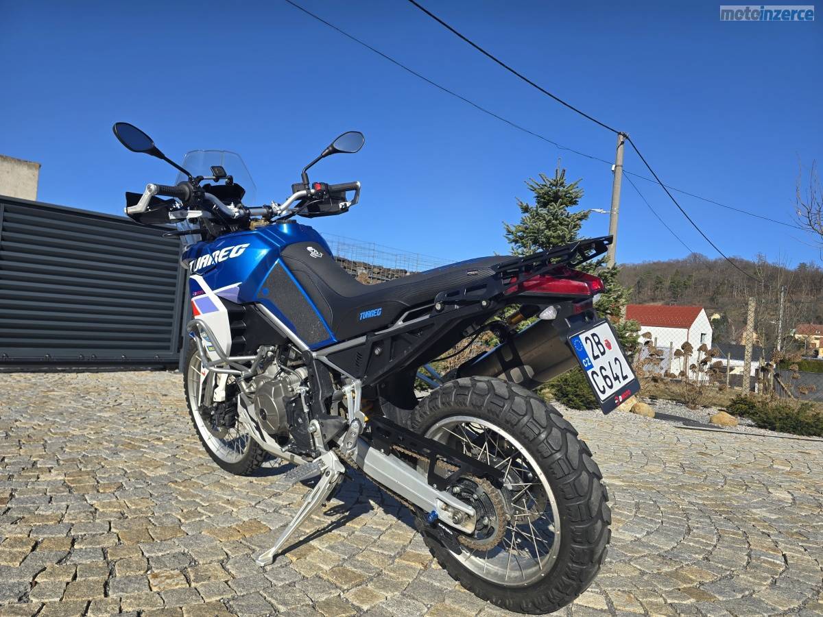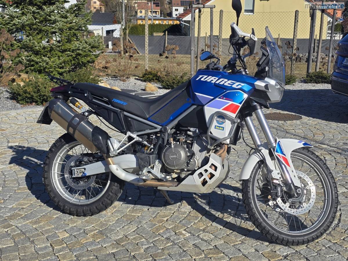 Prodám motocykl APRILIA TUAREG 660, podvozek ÖEHLINS, rok výroby 2022, najeto 16 000 km. První majitel, nebouraná, pouze drobné provozní oděrky, motorka v lednu 2024 předělána na podvozek ÖEHLINS v Brně u VANGELAS Corporation (původní tlumiče dodám k moto při prodeji), servis pouze originál APRILIA v DMOTO v České u Brna. Motorka právě po servisní prohlídce, výměna oleje a připravená na sezónu, loni nová řetězová sada. Spousta doplňku viz. foto (tlumič řízení SCOTT, sedlo TAPPEZZERIA ITALIA, chrániče páček TOURATECH)