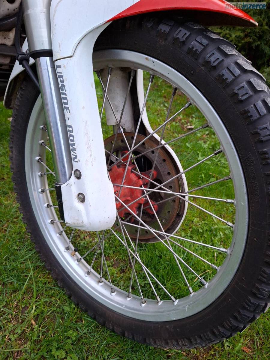 nádrž nepromačkaná, kaplička funkční, zadni plasty taky nepopraskane, přední blatnik taky plne v poradku, pěkné ráfky 2x, vidlice funkcni, lze nastartovat, světla svítí a klakson troubí