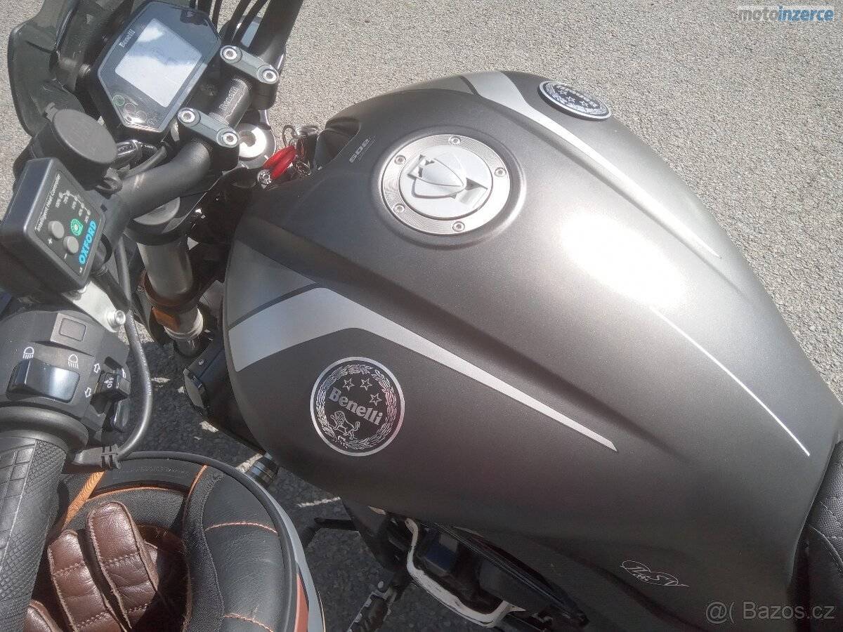 Nabízím k prodeji Benelli 502c, rok výroby 2021. Mnoho doplňků, servírováno v autorizovaném servisu. Jsem druhý majitel. Cena snížena z důvodu nutné výměny pneu a výměny zámku sedla. Další info e-mailem. Lokalita Ostrava. Důvod prodeje je přechod na Benelli 752s. Padací protektory, zadní sundavací opěrka, šité sedlo s pohodlnou gelovou výplní i pro spolujezdce ( kůže alcantra sedla Rutan), stylové prodloužení zadního blatníku, vyhřívané gripy Oxford, USB zásuvky ( 2x), čelní plexi, brašny, vše zakoupeno a namontováno u autorizovaného prodejce.
