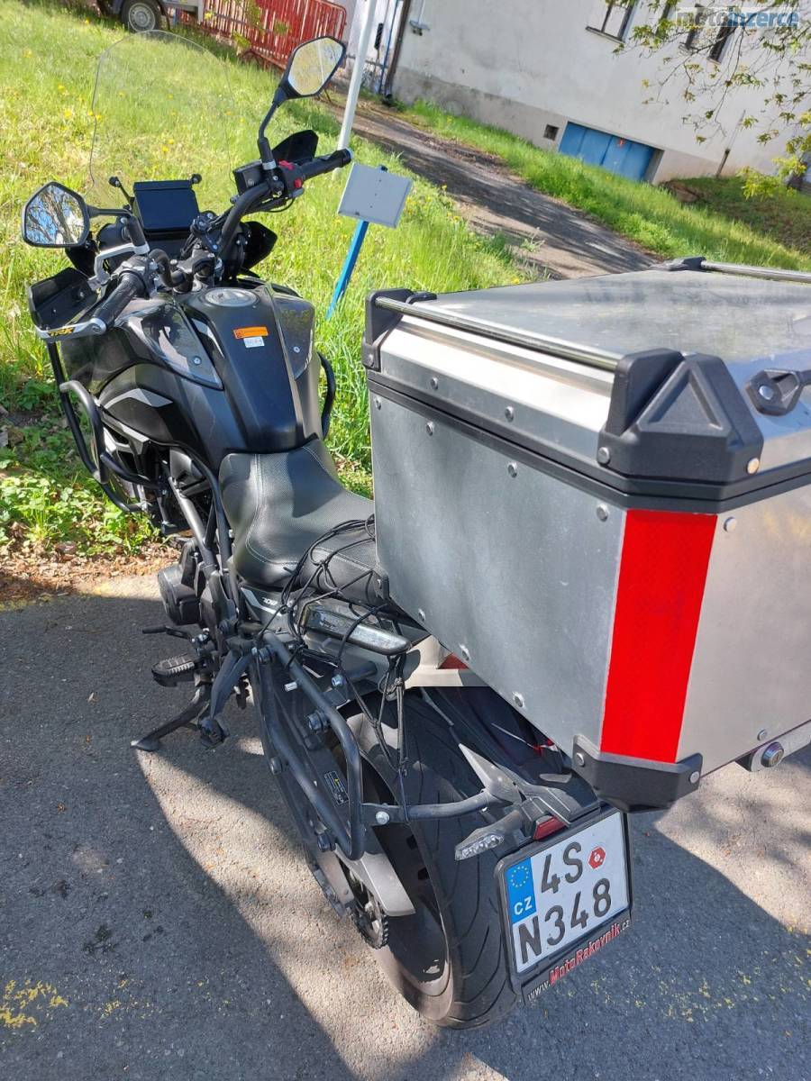 Vyhřívané hefty, sedlo. Zvýšené plexi původní bude součástí prodeje. 3x hliníkové kufry (levý, pravý a horní). Boční kufry využity 1x. Servisováno u prodejce Benelli. Před 2 tis. měněna celá řetězová sada. Jediná vada na kráse je lehké odření na levé straně. Motorka mě převážila na parkovišti čekal jsem na padací rám, proto je rám netknutý.