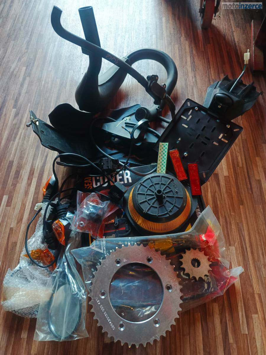 1. majitel, kompletní příbal, kryt kolene výfuku, potah sedla pyramidy, ventilátor spínaný ručně, tubliss vzadu, přepínač světel a mráček pod maskou viz foto, 2 píst při 160mh, hliníkový kryt kolena. Nová technická do 2029!