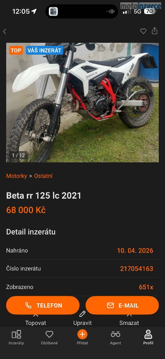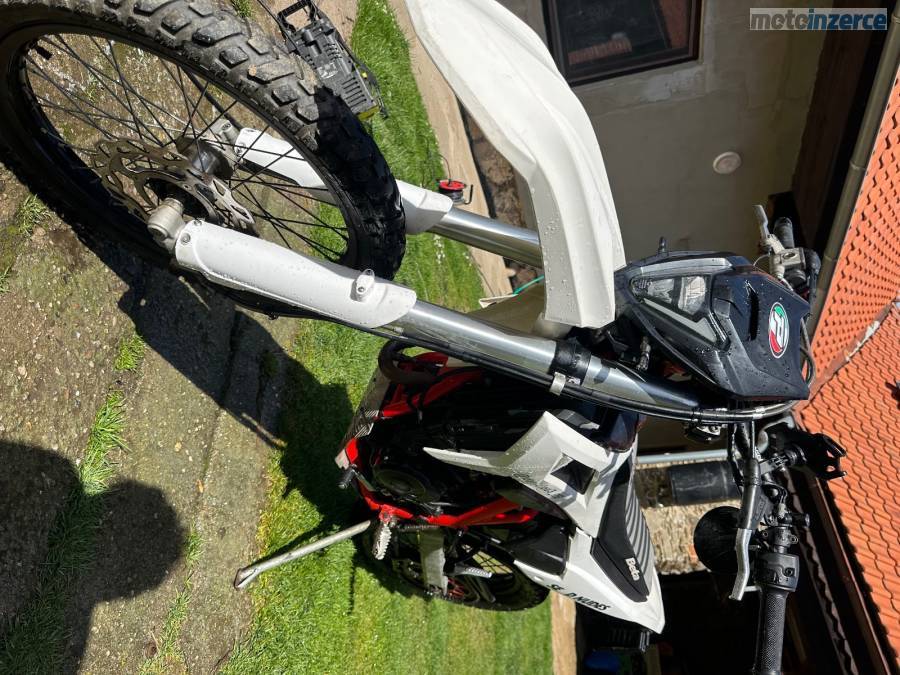 Prodám betu rr125 lc 2021 motorka ma najeto 21*** km motorka je plně funkcni na moto jsou dělaný nějaký doplňky přidám k moto náhradní přední blatník moto je nove přihlasena ma TP i SPZ jezdena pouze polni cesty a silnice jsou tam mensi blinkry dam k tomu i originalni 3 blinkry repas prednich tlumicu nove riditka praskli zadni blatnik mam k tomu i polepy nestihl jsem je tam dat ale nevim jestli budou sedet dam vam je k tomu