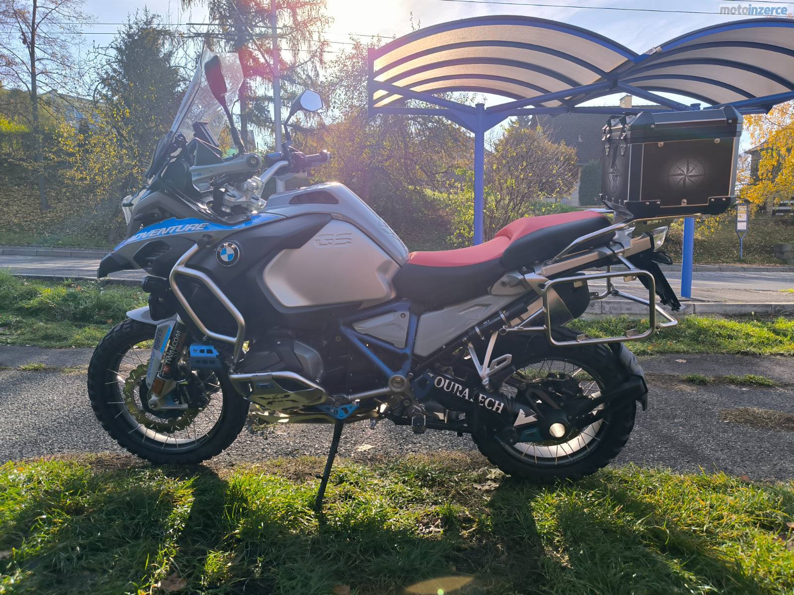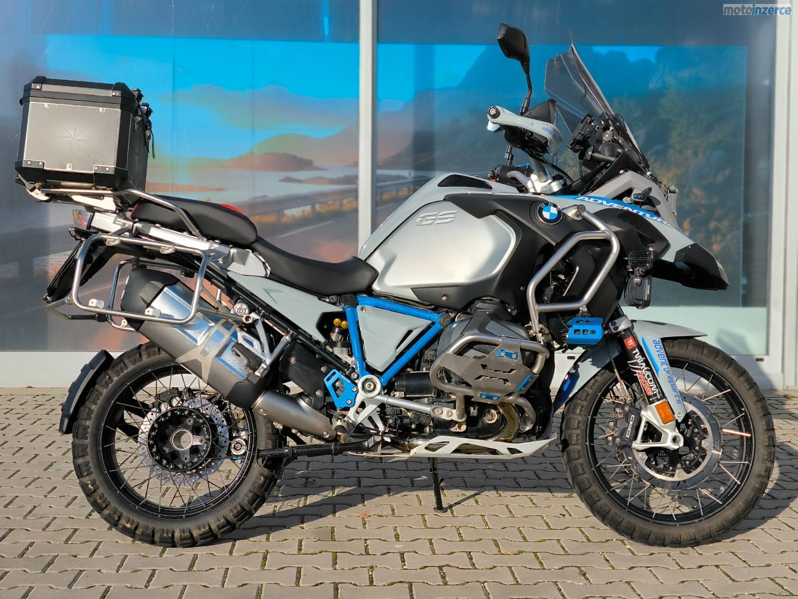 BMW R1250GS Adventure, 100 kW, r.v. 11/2019, barva Ice Grey Uni (stříbrná, bílá, šedá) + modré polepy, 68200 km, nová STK do 10/2029, zakoupeno a pravidelný servis v BMW Car Tec Ostrava, servisní knížka, Paket výbavy Komfort, Touring, Dynamic, LED světlomet + 1x originální přídavná světla + 2x Denali přídavná světla, chrom. výfuk, vyhřívané rukojeti, TPC kontrola tlaku v pneu, bezklíčkové startování, příprava pro navigační systém, tempomat, držáky hliníkových kufrů, DTC kontrola trakce, denní svícení, řadící asistent PRO, režim jízdy PRO, bílé LED blinkry, ABS PRO, Touratech zadní tlumič, alarm na DO, kardan Crash, spodní kryt kardanu, zvýšená ochrana rukou, kryt hlavního stojanu, kryty válců TT, kryt motoru, kryt světlometu, kryty mlhovek, kryty blinkrů, lehce kouřové zvýšené plexi Pluig + zpevnění, ochranné polepy na předních vidlicích a na rámu, nový kardan a baterie, silnější brzdy, páčky, další (doplňky a vybavení Touratech a Wunderlich cca za 180.000, Kč). Servis za 6.140 km, možno i se zadním TopCase kufrem BMW a dalšími doplňky, cebia.