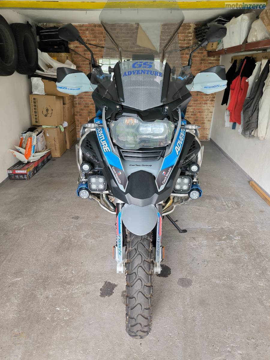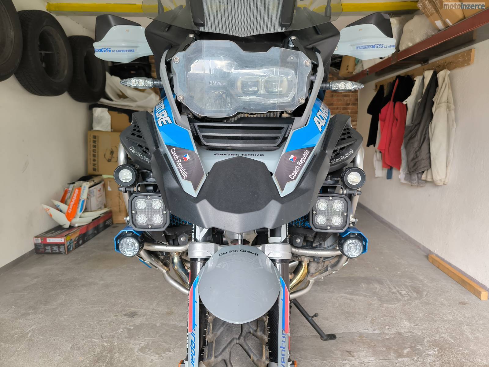 BMW R1250GS Adventure, 100 kW, r.v. 11/2019, barva Ice Grey Uni (stříbrná, bílá, šedá) + modré polepy, 68200 km, zakoupeno a pravidelný servis v BMW Car Tec Ostrava, servisní knížka, Paket výbavy Komfort, Touring, Dynamic, LED světlomet + 1x originální přídavná světla + 2x Denali přídavná světla, chrom. výfuk, vyhřívané rukojeti, TPC kontrola tlaku v pneu, bezklíčkové startování, příprava pro navigační systém, tempomat, držáky hliníkových kufrů, DTC kontrola trakce, denní svícení, řadící asistent PRO, režim jízdy PRO, bílé LED blinkry, ABS PRO, Touratech zadní tlumič, alarm na DO, kardan Crash, spodní kryt kardanu, zvýšená ochrana rukou, kryt hlavního stojanu, kryty válců TT, kryt motoru, kryt světlometu, kryty mlhovek, kryty blinkrů, lehce kouřové zvýšené plexi Pluig + zpevnění, ochranné polepy na předních vidlicích a na rámu, nový kardan a baterie, silnější brzdy, páčky, další (doplňky a vybavení Touratech a Wunderlich cca za 180.000, Kč). Servis za 6.140 km, možno i se zadním TopCase kufrem BMW a dalšími doplňky, cebia.