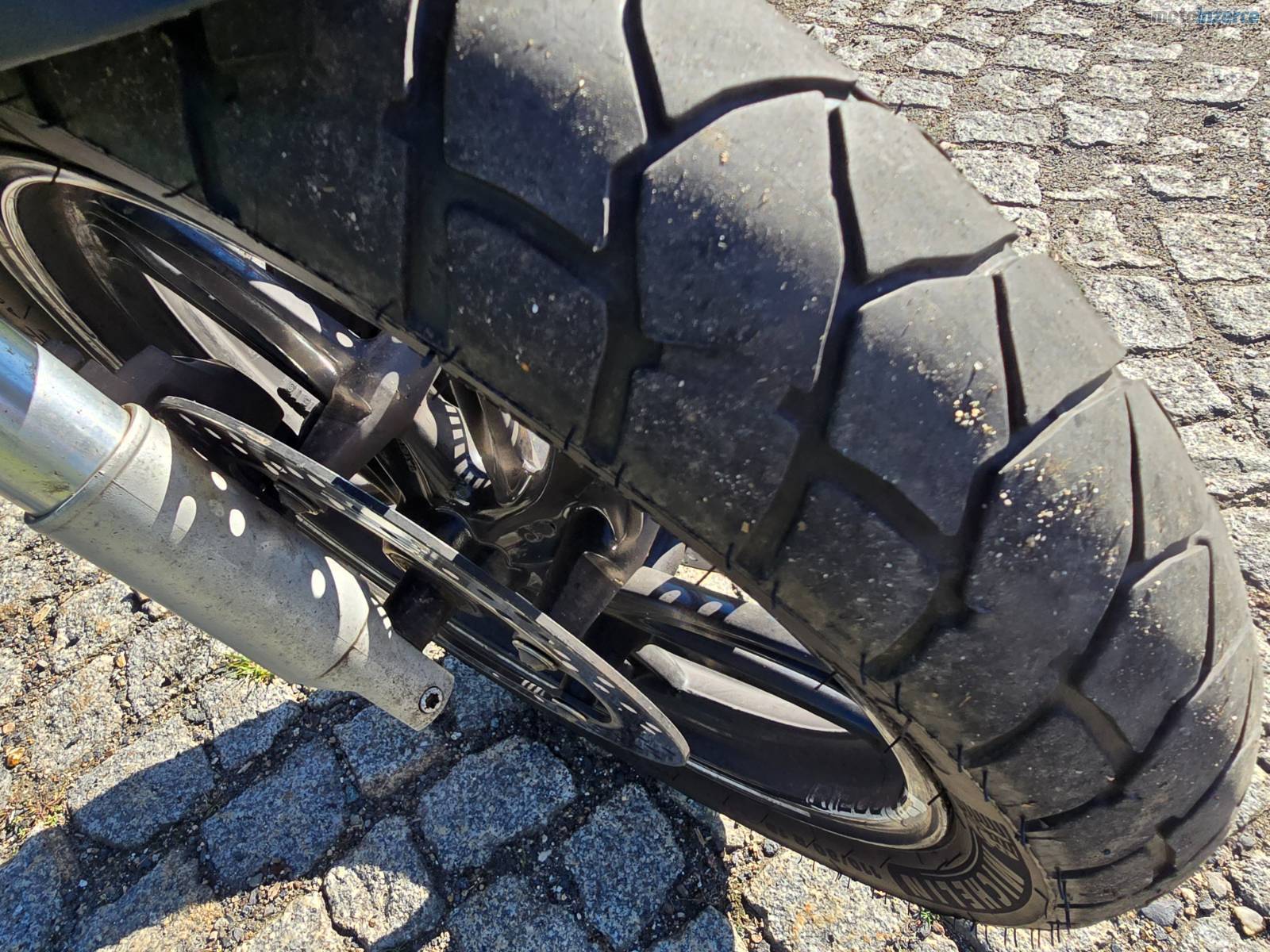 Pneu Michelin Anakee, přední 40%, zadní teď v srpnu nová, najeto cca 1000 km. Předchozí mi vydržela 14.000 km, s tím, že jezdím téměř vždy ve dvou a jsou v tom i dvě dovolené v "plné polní", Rakousko, Švýcarsko, Itálie, maximální spokojenost. Mašina 100% spolehlivost, spotřeba pod 5 litrů i ve dvou s plnými kufry.