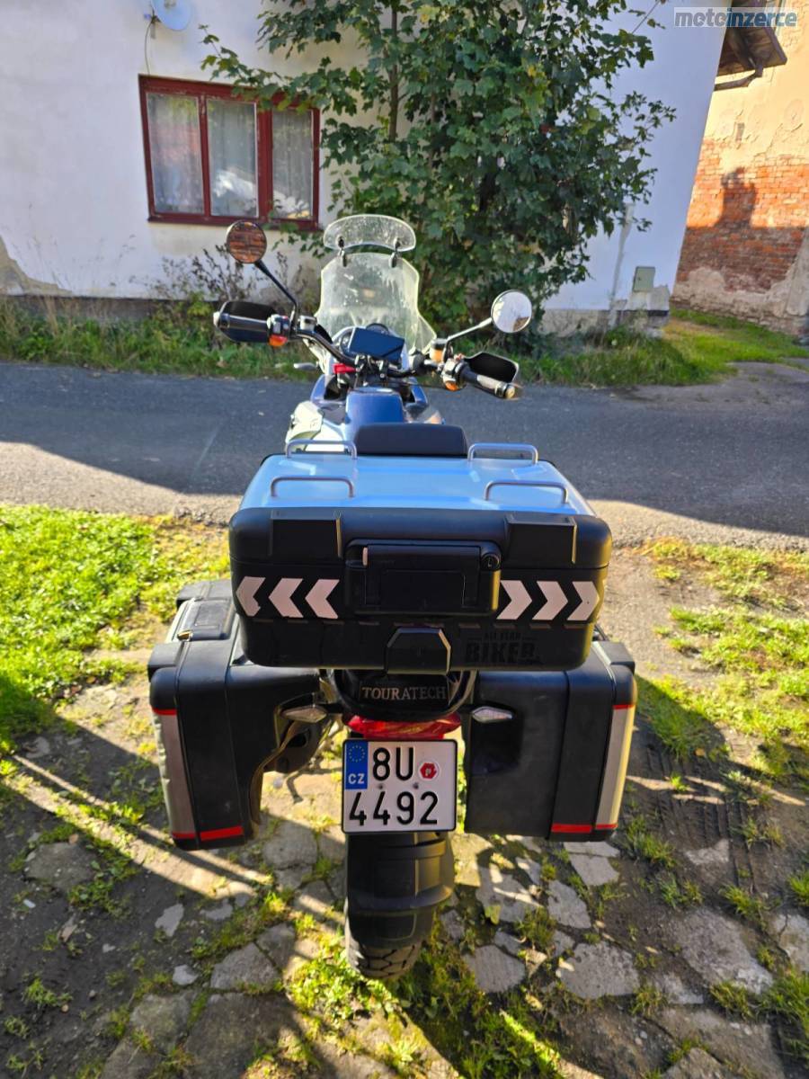 K moto jsou 3 vario kufry (taky už si nesou nějaký ten šrám z cest). Přední světlomet a blinkry LED (při spuštění blinkru bliká na displeji porucha žárovky, neřešil jsem).