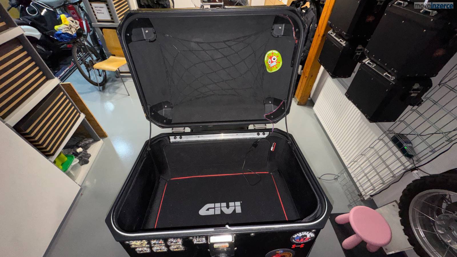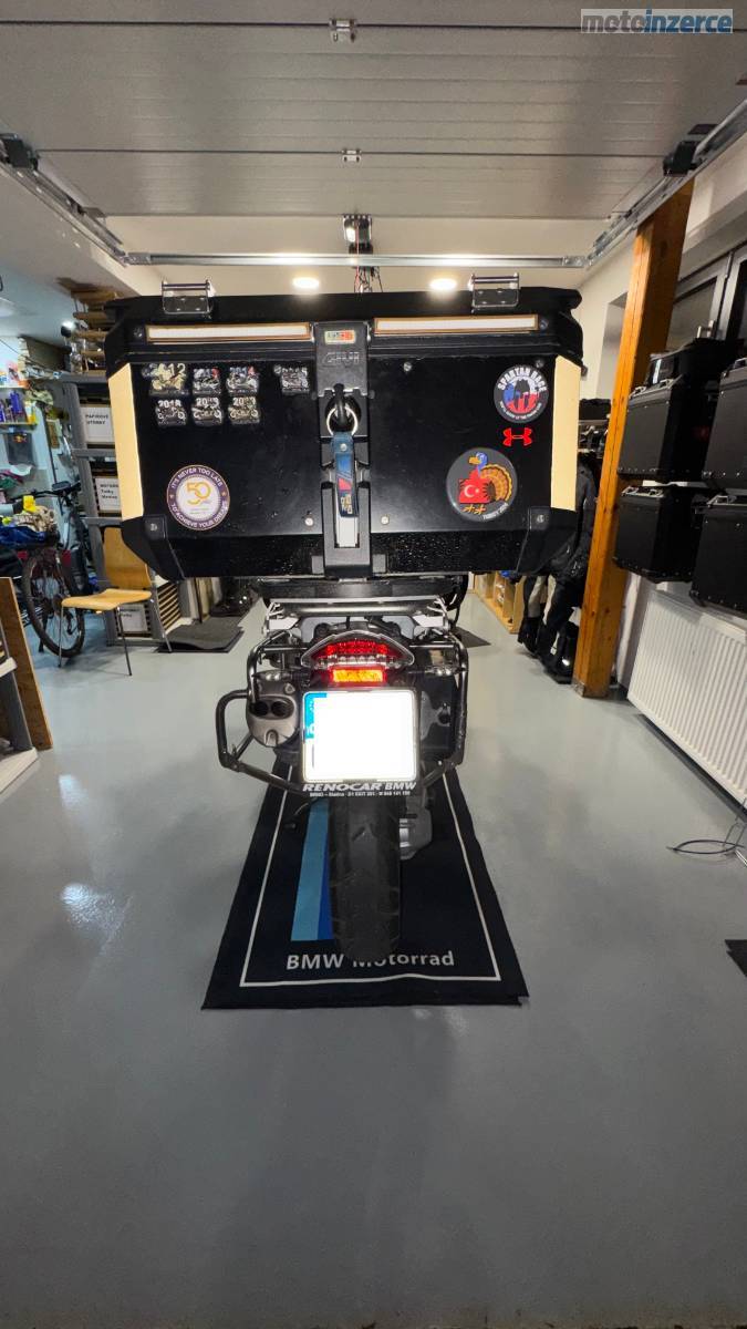 • topcase GIVI 58l s vnitřním polstrováním, síťkou, integrovaným světlem, přídavným brzdovým světlem a nabíjením (sjednoceno na klíč BMW)