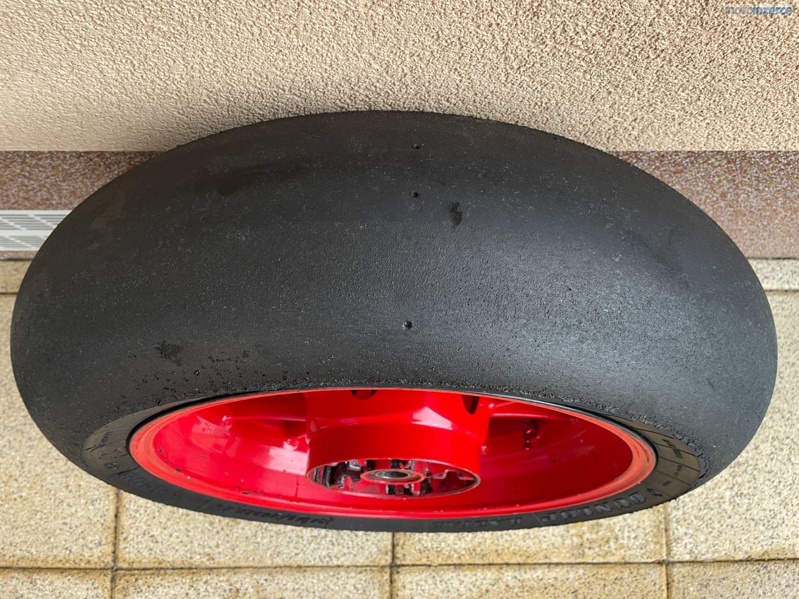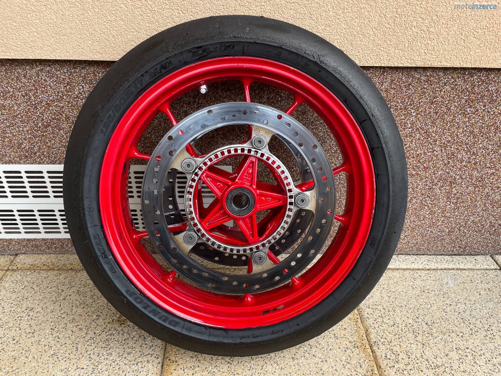 - druhá sada kol včetně slick pneu v celkové hodnotě přes 20 000 Kč DUNLOP KR109 125/80ZR17 směs 3 a KR108 200/70ZR17 směs 2, nájezd pneu 2×20 min