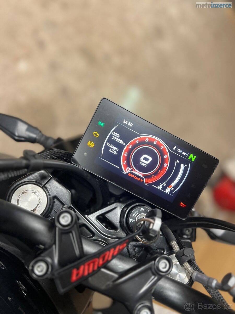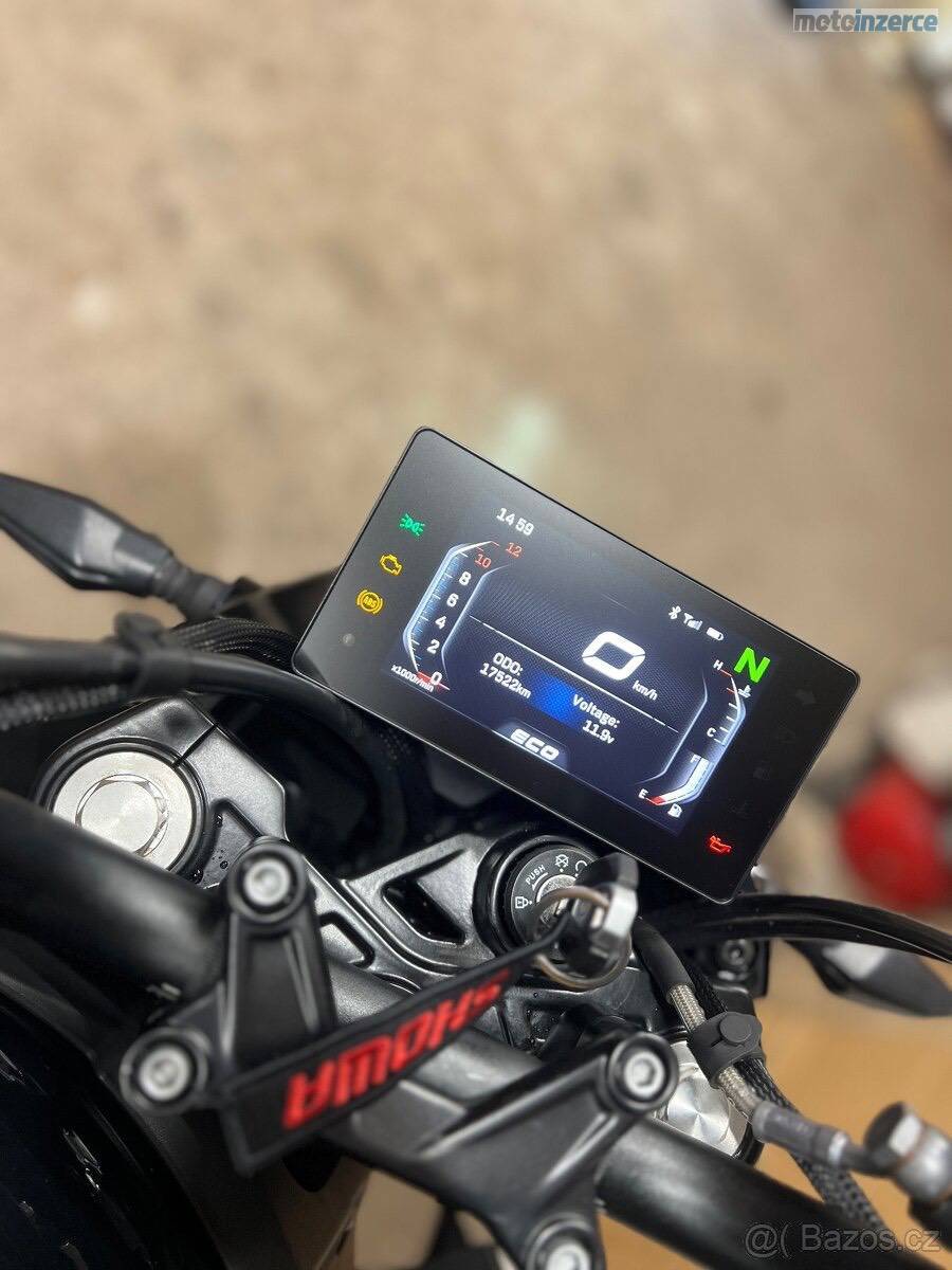 Odpružení je KYB, zadní tlumič nastavitelný, antihop spojka, fullLED osvětlení.