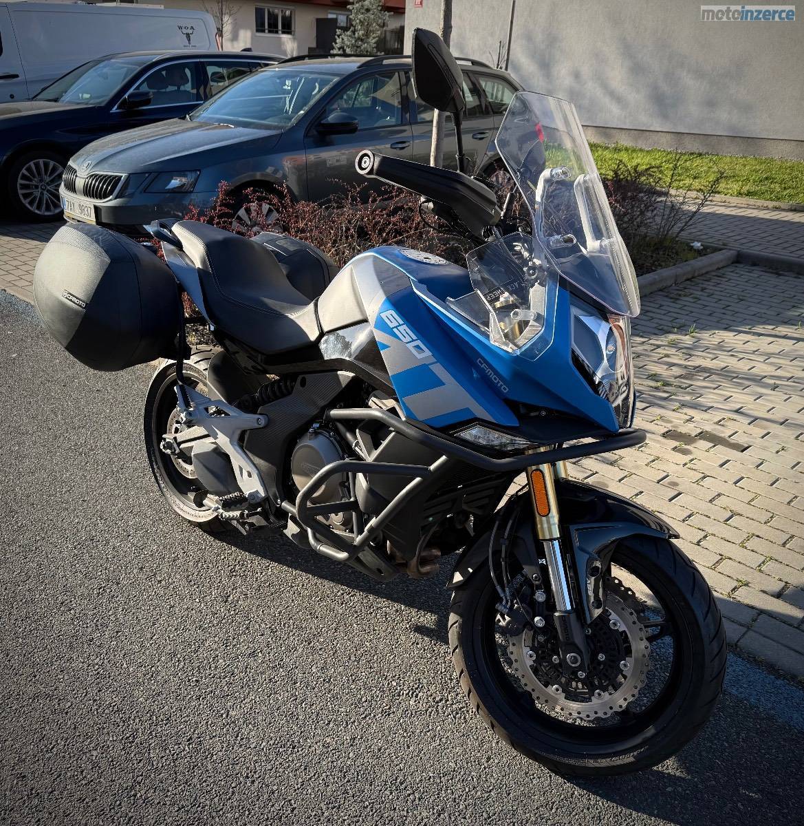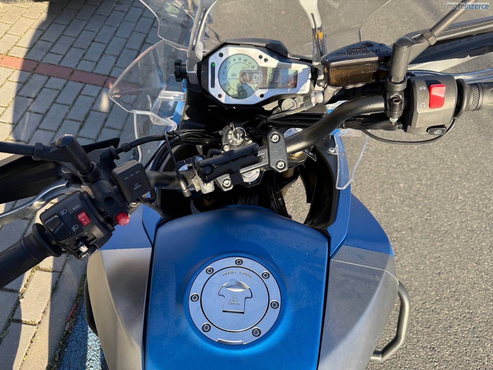 Originální boční kufry, padací rámy, centrální stojan, vyhřívané rukojeti.