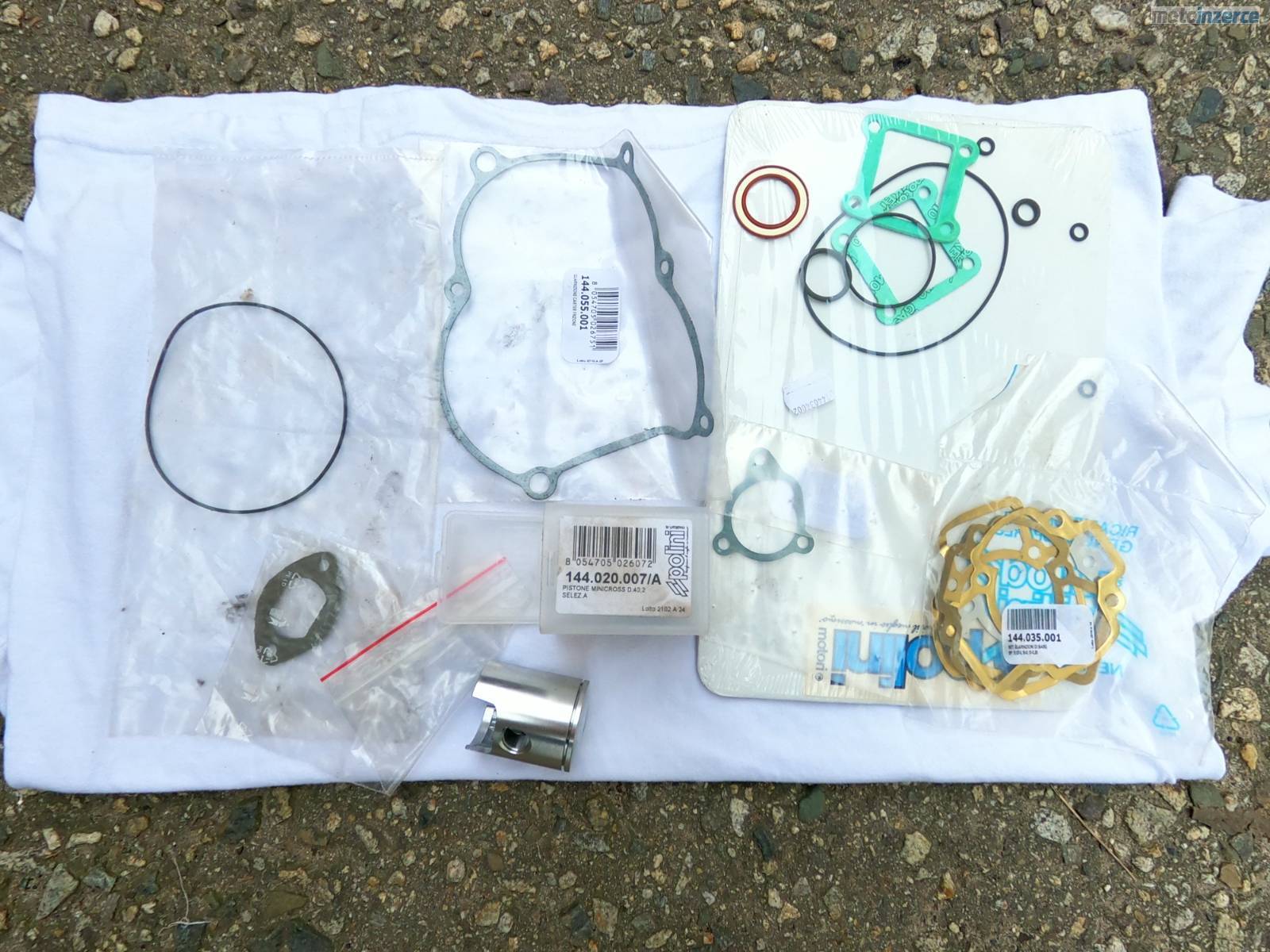 K motorce přidám další novou pístní sadu + kompletní sada těsnění + další nahradní díly, které jsem nakoupil do zásoby.
