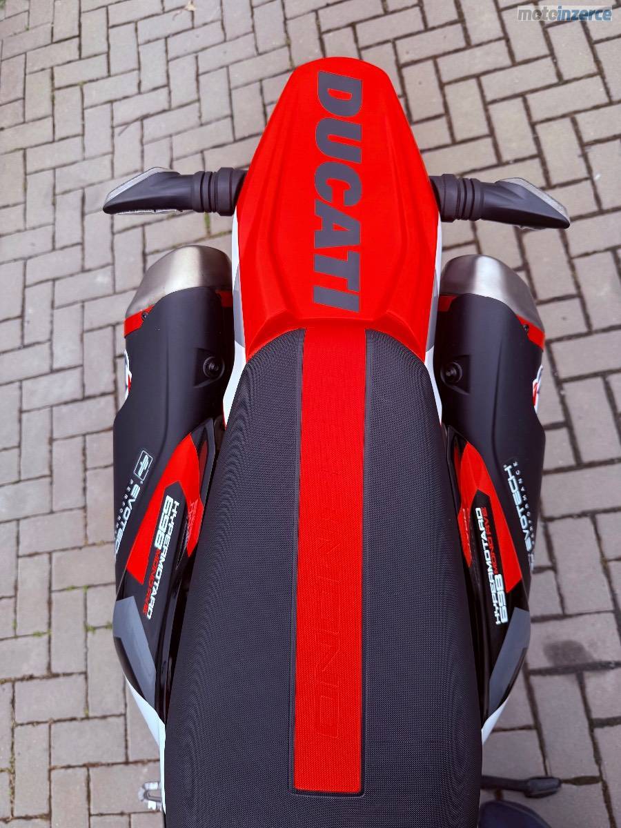 Motorka je odpočtová, cena je včetně 21% DPH. Na motorce je kryt motoru. Dále zadní držák světla a SPZ, který je posunut přímo pod blatník. Hliníkový kryt předního třmenu brzdy. Oboje značky Evotech. Komplet výfuky Termignoni. Originál výfuky a díly přidám k motorce.