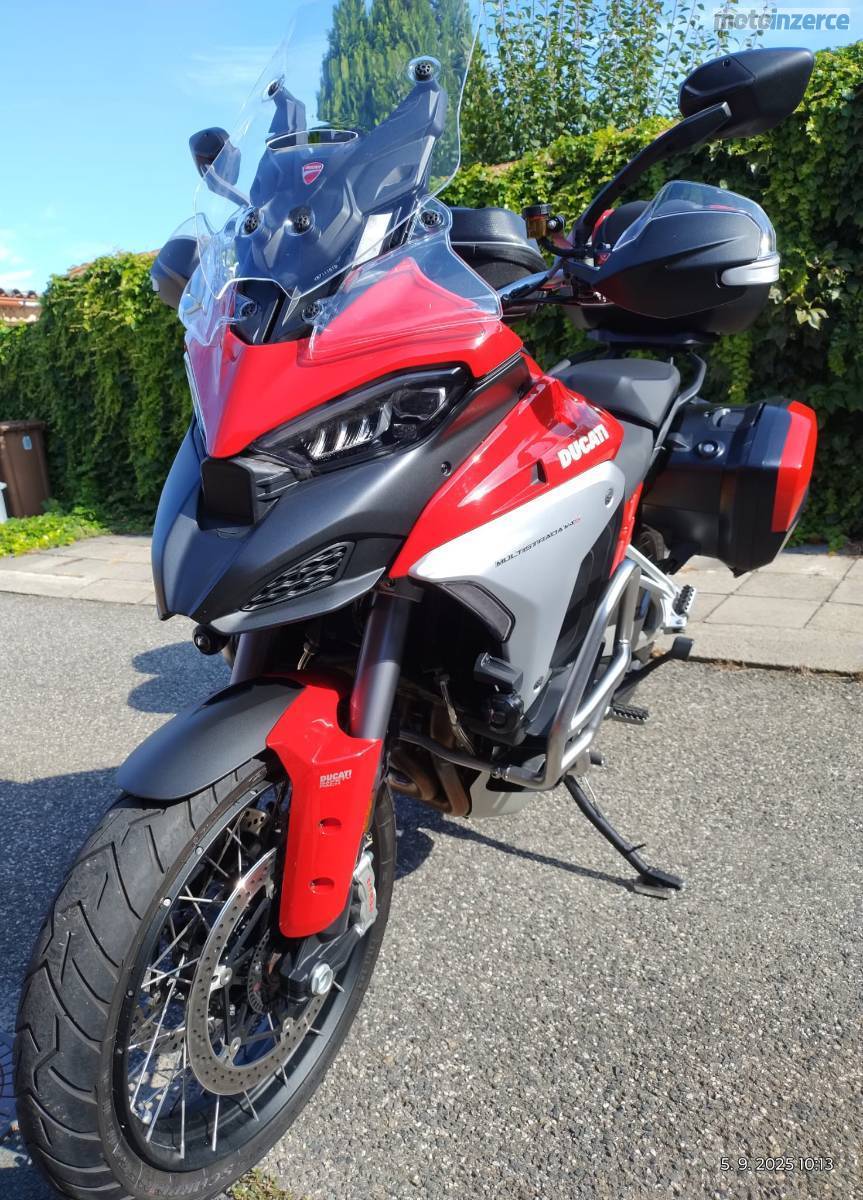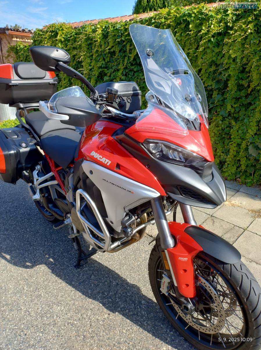 Prodám Ducati Multistrada V4S Radar, koupeno v Ducati Banská Štiavnica nové, r.v. 08/2023, záruka 5. let, najeto 4.600 km, nadstandartní výbava, vše originál včetně snížení podvozku, montováno v Ducati, pravidelné servisy v Ducati, stav perfektní, 1. majitel, odpočet DPH, velmi malý nájezd z časových důvodů, RZ není součástí prodeje. V případě rychlého jednání možná sleva dohodou, prosím jen vážní zájemci. Děkuji.