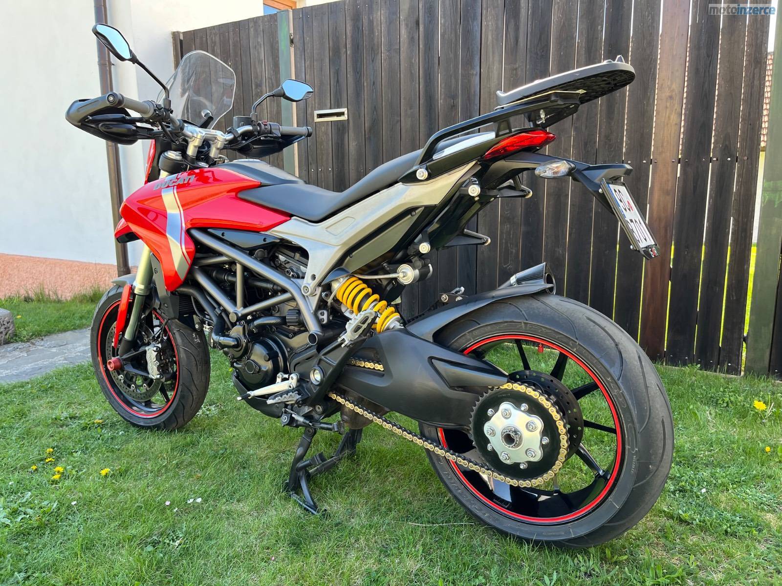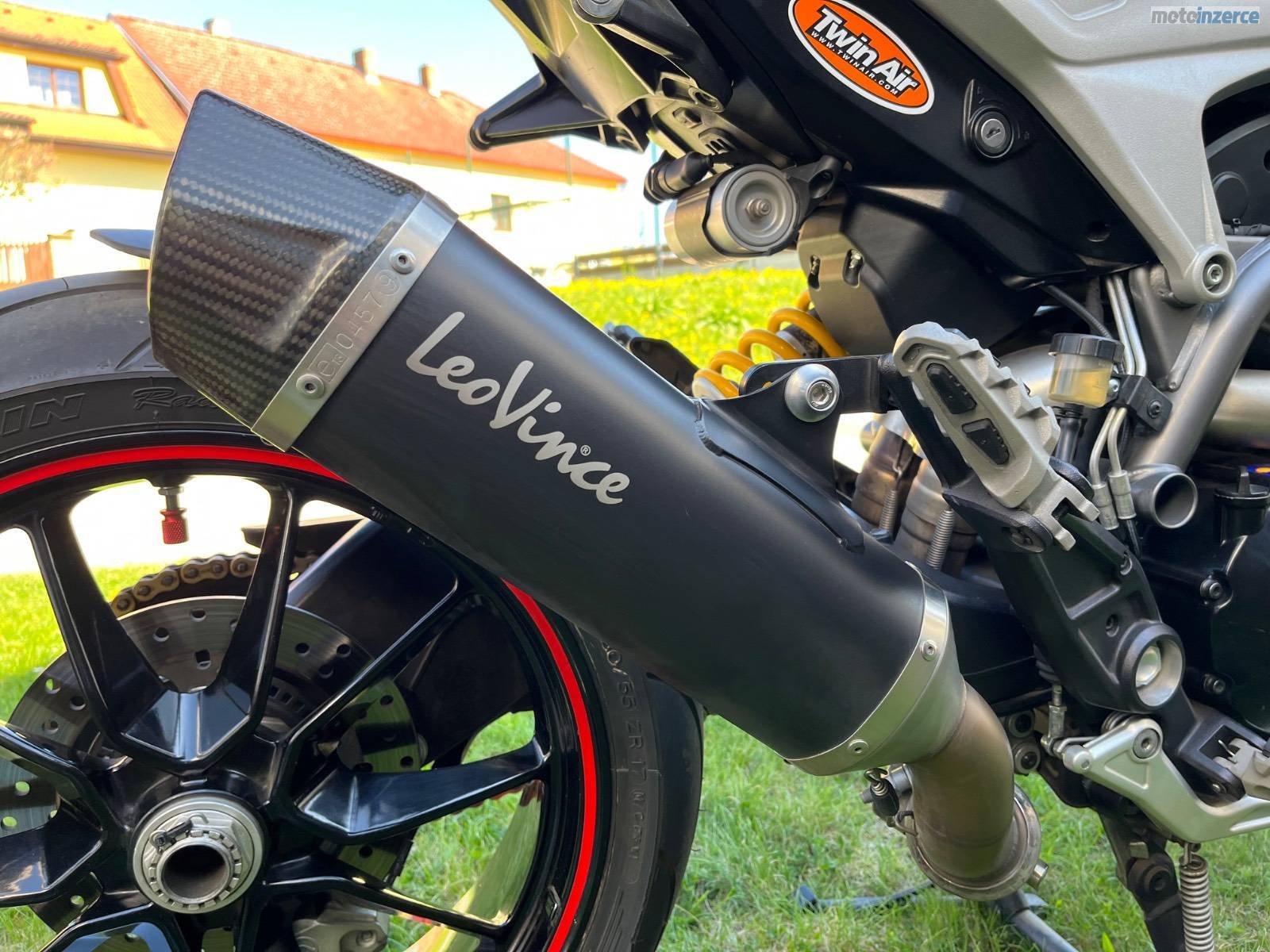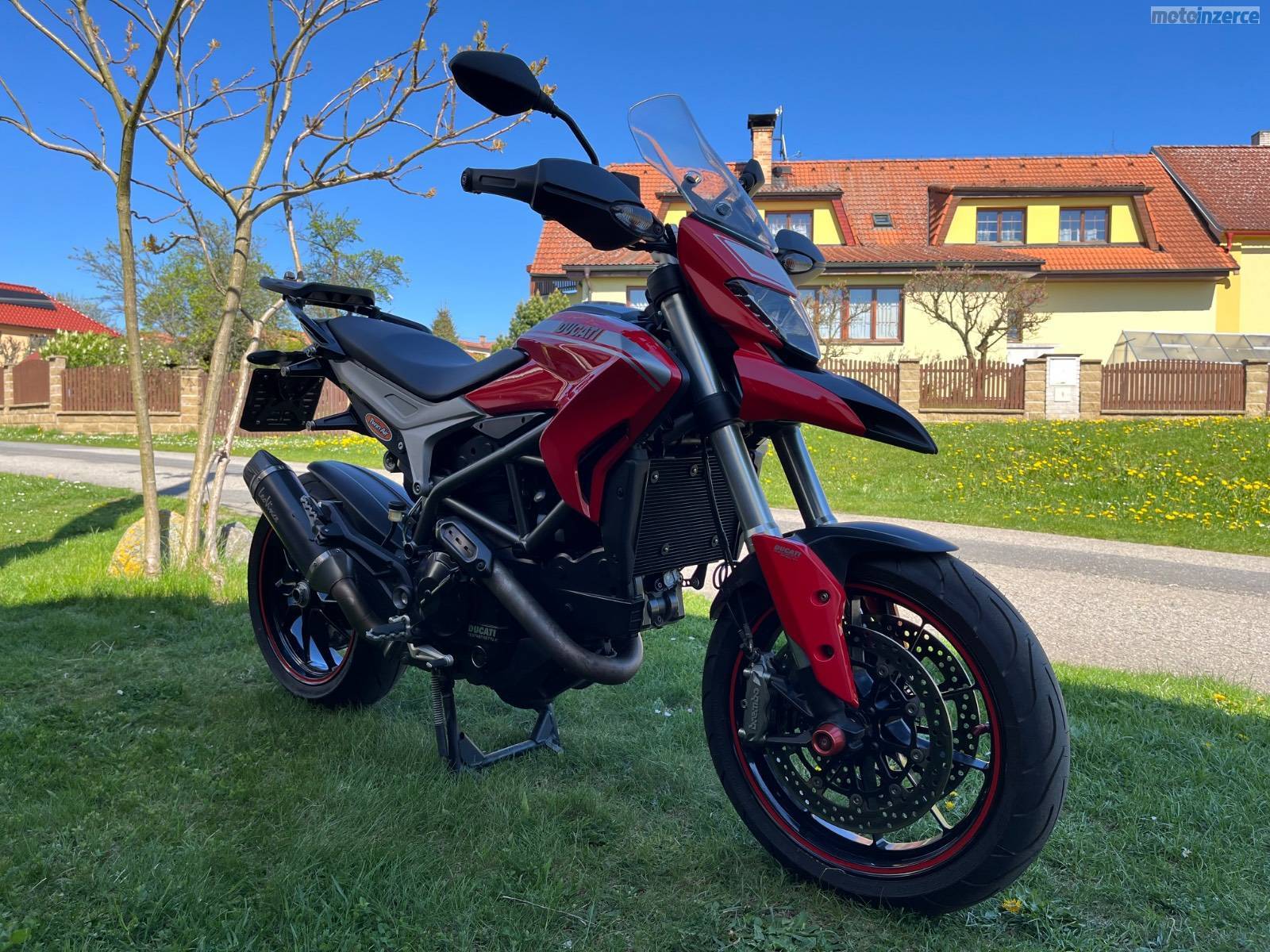Motorka ve velmi dobrém stavu. Minulou sezonu kompletní výměna kapalin (chladicí, brzdová), repas přední vidlice, nový chladič (bolest Hyperstrad) a nové pneu. Od té doby najeto 1500 km. Letos olej a filtr, nová TK. Má homologovaný výfuk LeoVince, originál je k motorce. Originál brašny a sedlo Hyperstrada. Zároveň přidám druhé sedlo Hypermotard a nízké přední plexi. Příští desmo servis za 15 tis km.