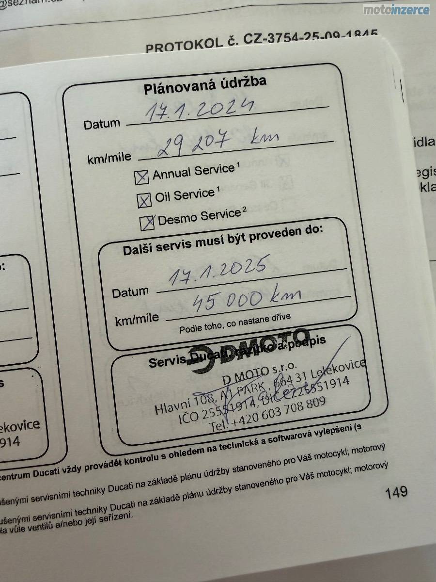 • Desmo servis: 2024 kompletní velký servis v Dmoto (ventily, řemeny,…).
