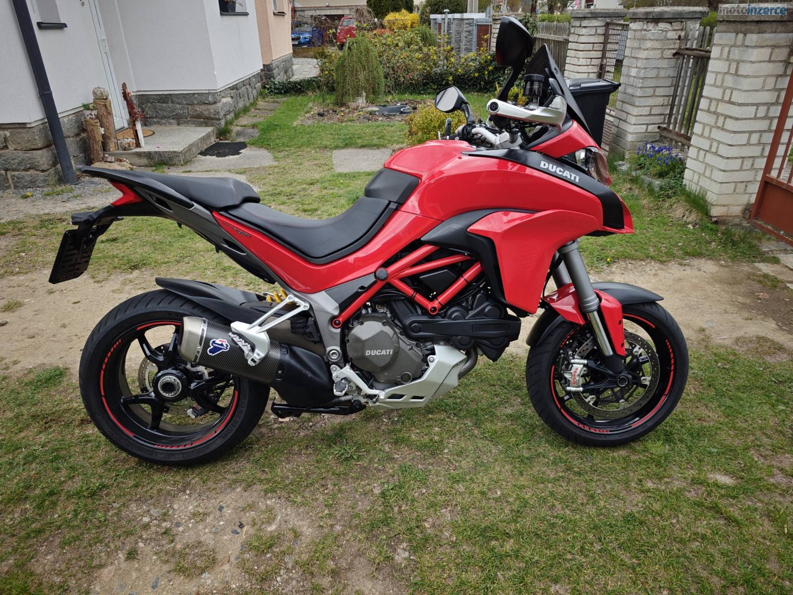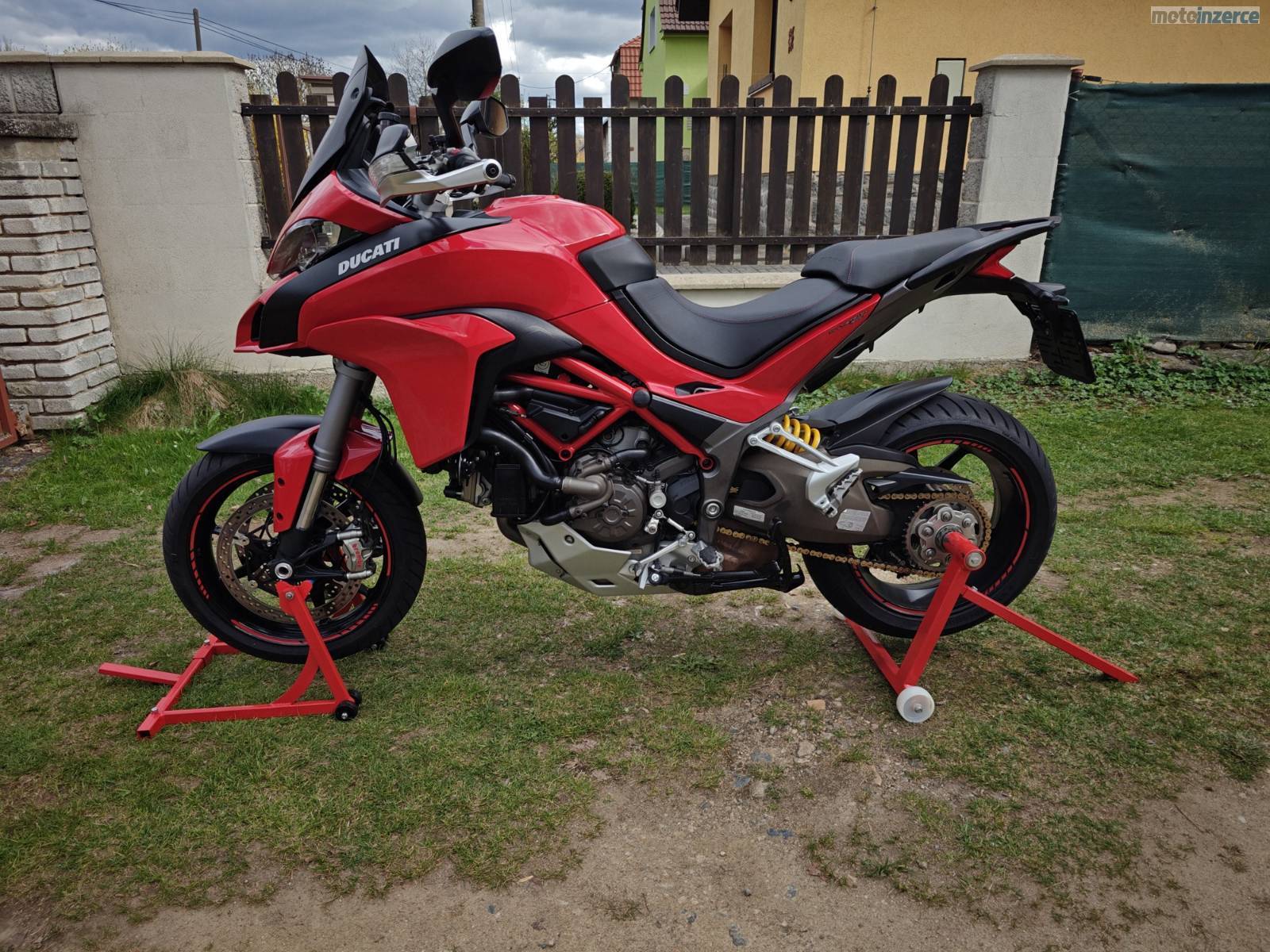 Prodám svoji Ducati Multistrada 1200s, D-AIR, r.v. 2016, najeto 28850 km, STK do 06/29. Velmi pěkný stav, DESMO provedeno při 24000 km (r. 2022) u PROFI MOTO Děčín. Jsem druhý majitel. Elektronický podvozek, verze D-AIR (možnost airbagové vesty), laděný výfuk Termignoni (originál přidám k moto), karbonový štítek z verze Pikes Peak (originál také přidám k moto), centrální stojan, vyhřívané rukojeti, tempomat, 4x jízdní režimy, topcase kufr origo + plotna (přidám k moto), zadní LED blinkry sekvenční. Přes zimu servis: nový zadní kotouč + destičky, ložiska v krku řízení, ložisko v předním kole i v zadním excentrickém hubu (preventivně, nebylo potřeba), jinak vše ok. Připravena na sezónu. K moto přidám také přední a zadní stojan viz. foto. Nemám na ni čas, najel jsem za poslední 4 roky do 5tis. km. Při rychlém jednání sleva možná. Pokud nezvedám tel. pište prosím SMS, ozvu se zpět.
