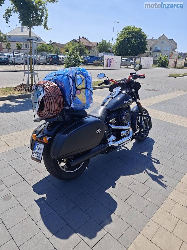 Harley Davidson FLSB Sport Glide 107 zakoupen nový v ČR v roce 2018. Najeto 42.203 km se servisní knihou. Nikdy nehavarovaný s dokoupenými clubstyle řídítky v rudém eloxu včetně krátkých páček, vyšší plexi, kryt sání, výfuky Rinehart, přešité sedlo s důrazem na pohodlí spolujezdce, padací rám a opěrka spolujezdce s nosičem. Původní řídítka s představcem k dispozici.