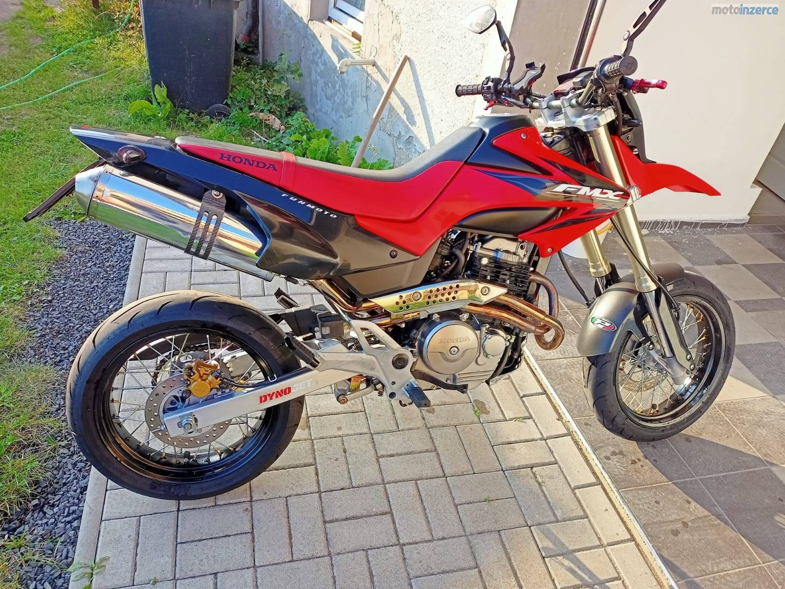 Prodám Hondu FMX650, první majitel v ČR. Top stav. 2x klíč. Měřák tl. pneu, DYNO JET KIT, KN filtr, olej. chladič, LED blinkry, lámací páčky, nové brzd. destičky, crom. rozeta, nové pneu MITAS SPORT FORCE+, olej Motul 5100.