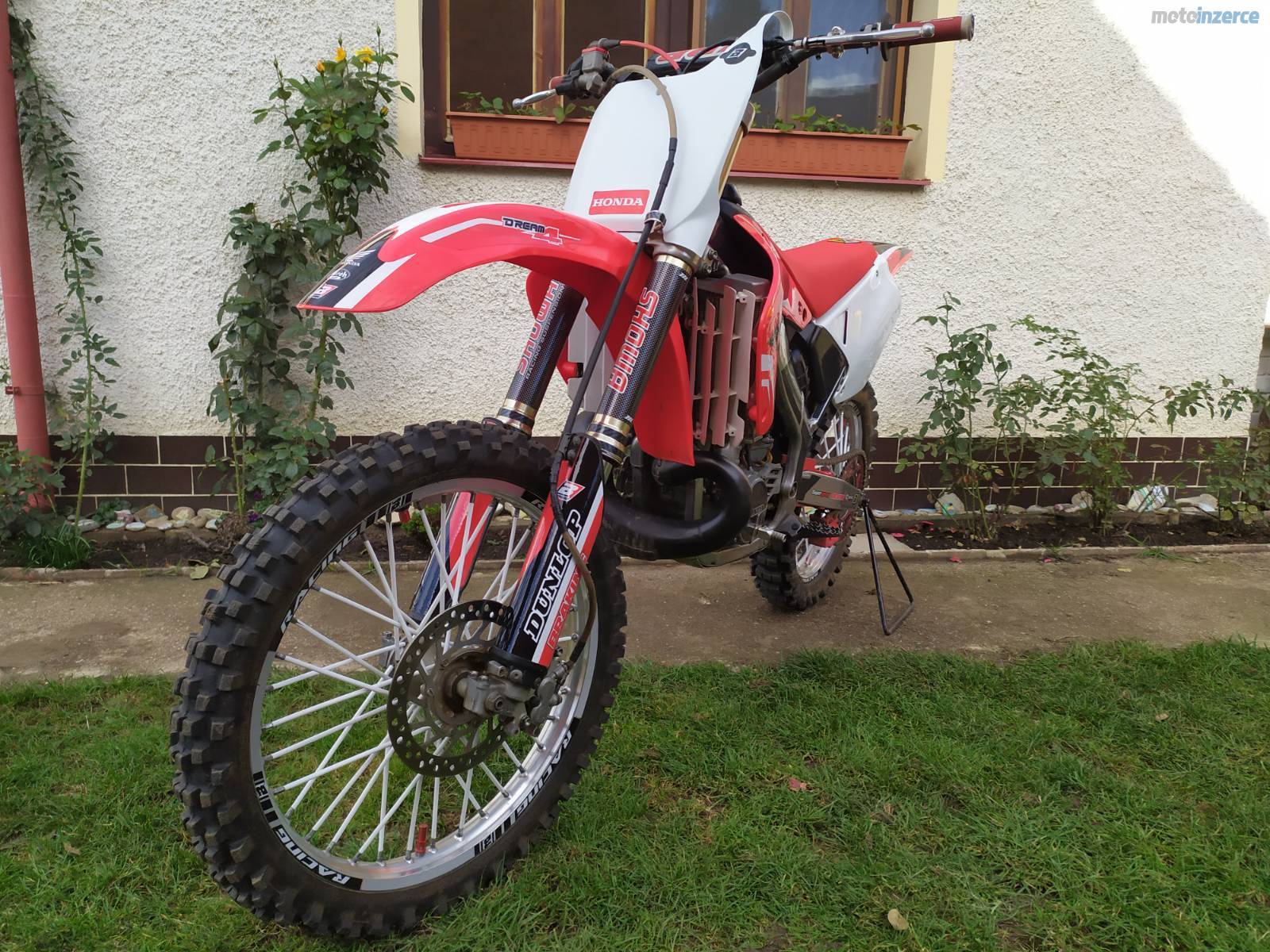 Na prodej Honda cr 250 z roku 2000. Motor 2t s výfukovou mechanickou přívěrou, která je nesmrtelná o proti ovládání RC přívěry. V motoru nová ložiska, gufera, ojnice a kovaný píst Wiseco, válec OK. Spojkový koš jako nový nenasekaný, spojka funguje jak má. Převodovka zkontrolovaná – je ok. O komfort z jízdy se stará podvozek SHOWA, který byl repasován. Ostrý zvuk motoru podporuje kompletní výfukový systém PROCIRCUIT. Pneu, brzdy, řetězovka – jako nové. MOŽNÁ VÝMĚNA ZA YAMAHA YZ 125. Pro více info volejte. Na SMS nereaguji.