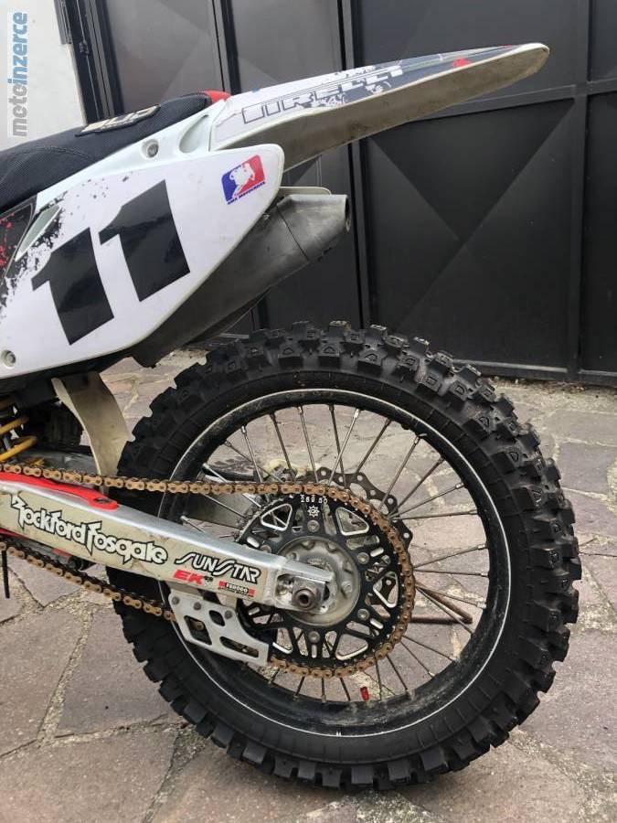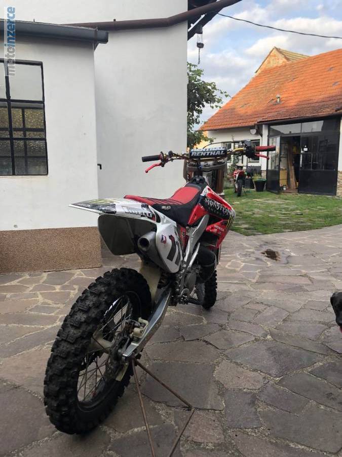 Prodám svoji srdcovku Hondu CR250, r.v. 2004, bohužel na ni není čas a peníze jsou potřeba jinde. Byla ježděná vesměs na trati, ale žádná velká pila, servisní intervaly se dodržovaly na vše, pár mth zpětnou byl udělaný repas vidlic a nová náplň, nový olej v převodovce, ložiska v zadním kole, řetězovka, kotouče předek i zadek, nové lízátko, rolnička. Pneu tak na 80%. Nějaké nedostatky má, chtěl by udělat repas přepákování a nejspíš by bylo dobré mrknout na zadní tlumič. Já na ni už nemám čas, poslední asi 3 a půl roku jsem ji jen občas nastartoval doma na dvoře. Více informací rád zodpovím. Dohoda na ceně na místě.