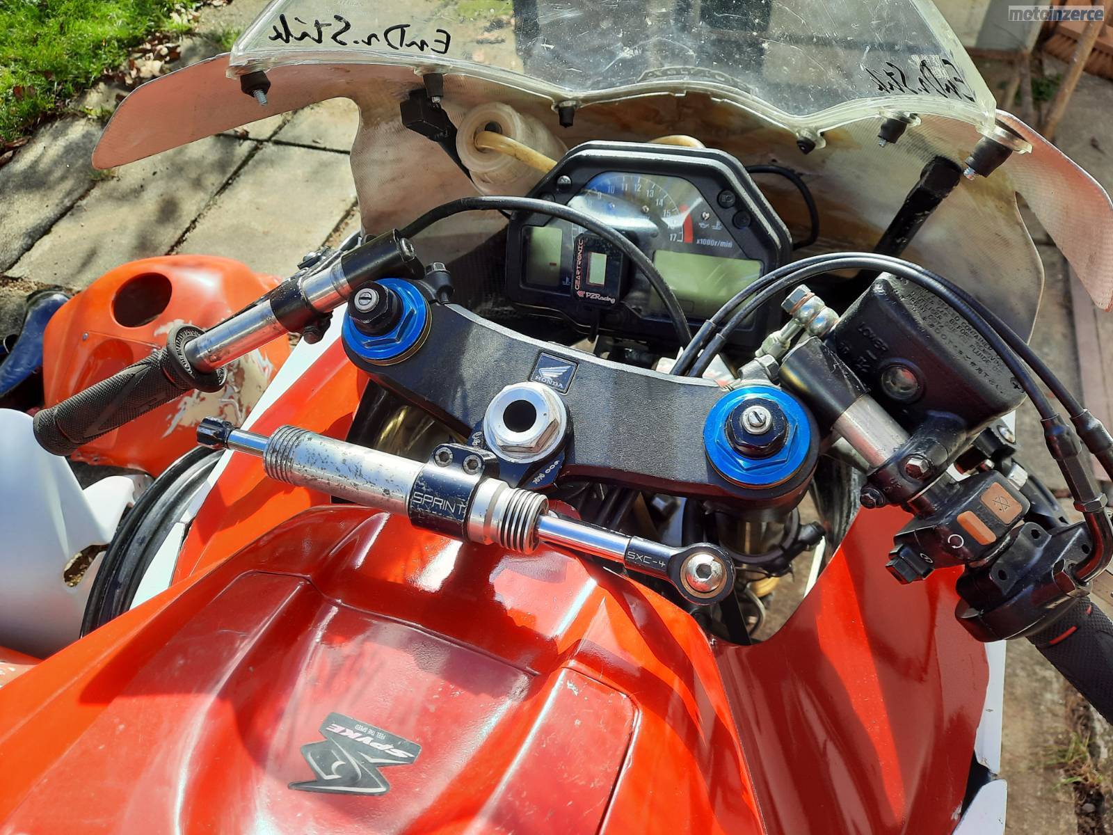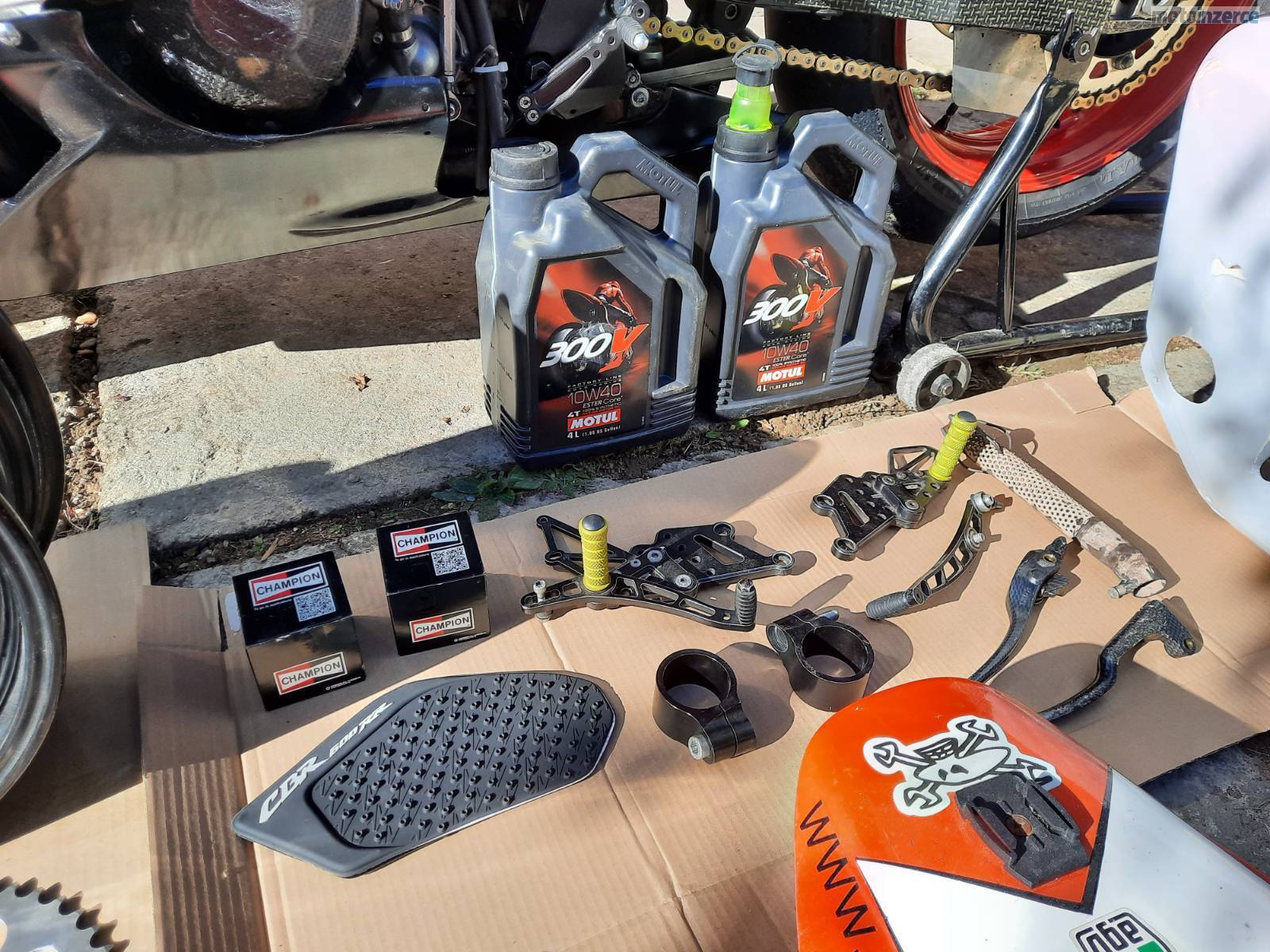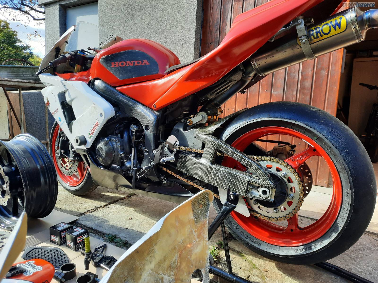 Prodám okruhovku Honda CBR600RR, motocykl má motor v úpravě supersport od pana Havlíka (na brzdě 130Hp, graf mám), přídavný chladič, plus dodatečné chlazení výměníku, antihoppingovou spojku, rychlořazení, upravená sací hrdla, přepákování, víčko nádrže, páčky a řídítka PPtuning, řídící jednotka Ignitech (nastavení pan Murárik), kompletní výfuk Arrow, carbonové kryty rámu a motoru, kevlarové na kyvce a zadní blatníček, ukazatel zařazené rychlosti. Zadní tlumič Öhlins, v předu pístková sada K-tech, řetěz DID520ERV, destičky Brembo RC. K motocyklu přidám: Druhý motor, také úprava od pana Havlíka (včetně altiku a zapalka, pouze sériová spojka), druhé ráfky Braking, druhá sada kompletních kapot, dvakrát plexi, páčky, přepákování SBK a nějaké drobnosti. 6l oleje Motul 300V, dvakrát olejový filtr. Motocykl není nový, má něco za sebou, kapoty opravované atd., je potřeba doladit pár věcí, ale jinak plně funkční. V případě zájmu, možno prodat druhý motor zvlášť za 20tis., sada ráfků Braking 12tis.
