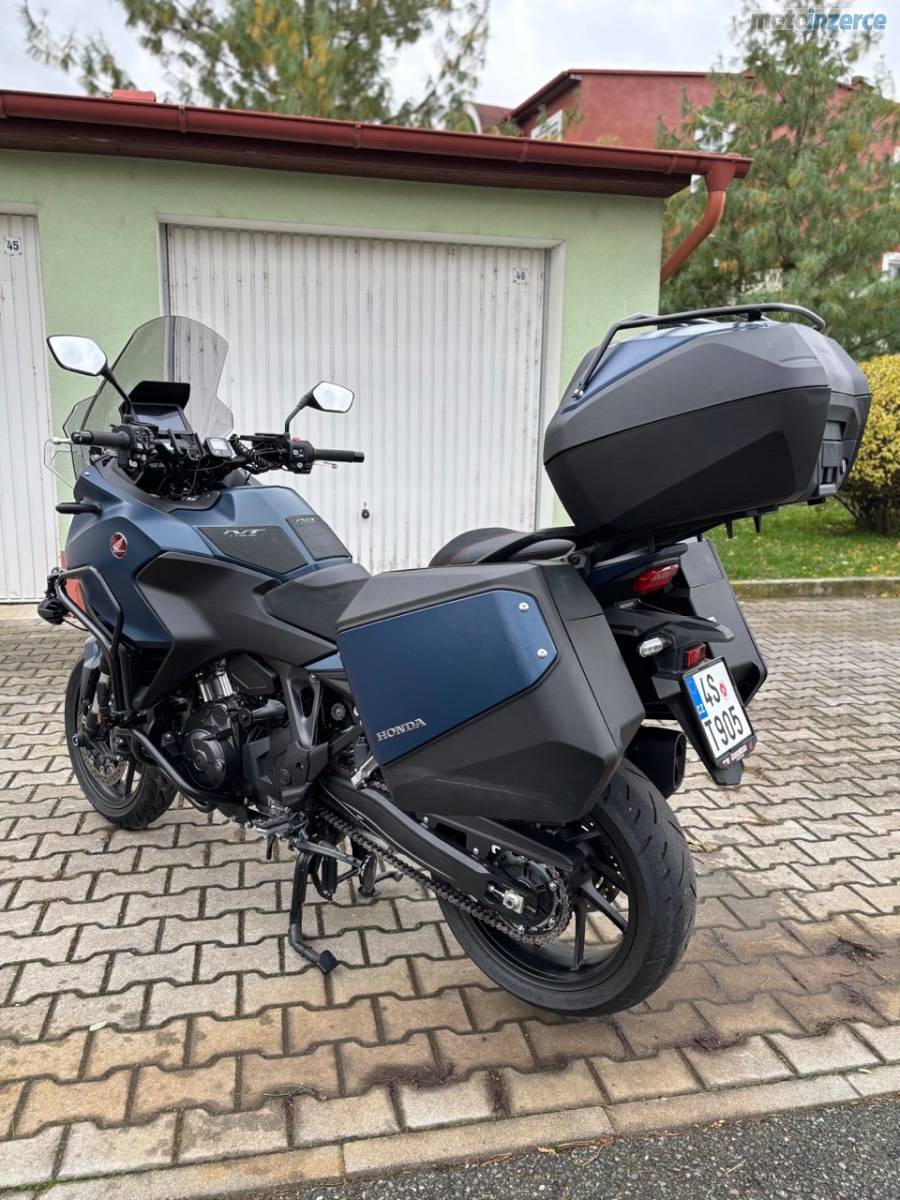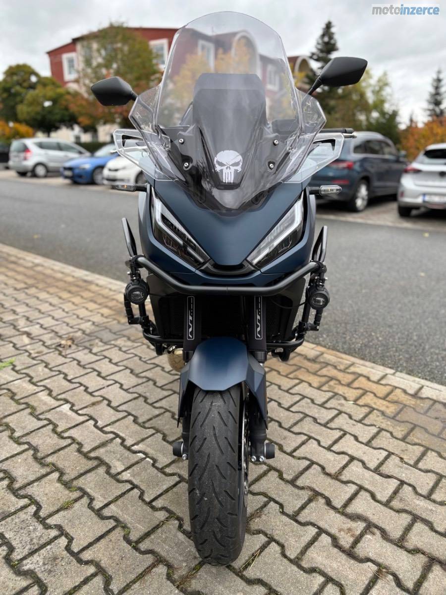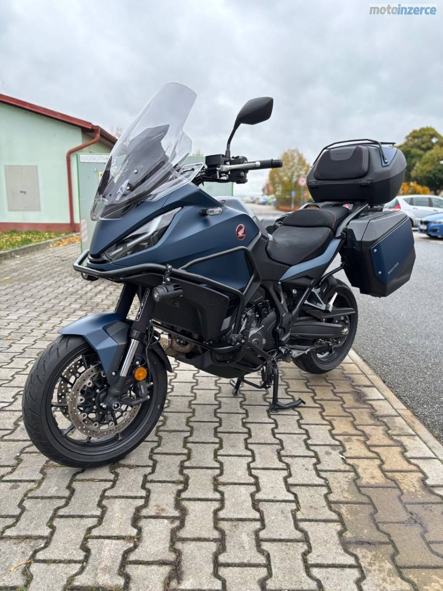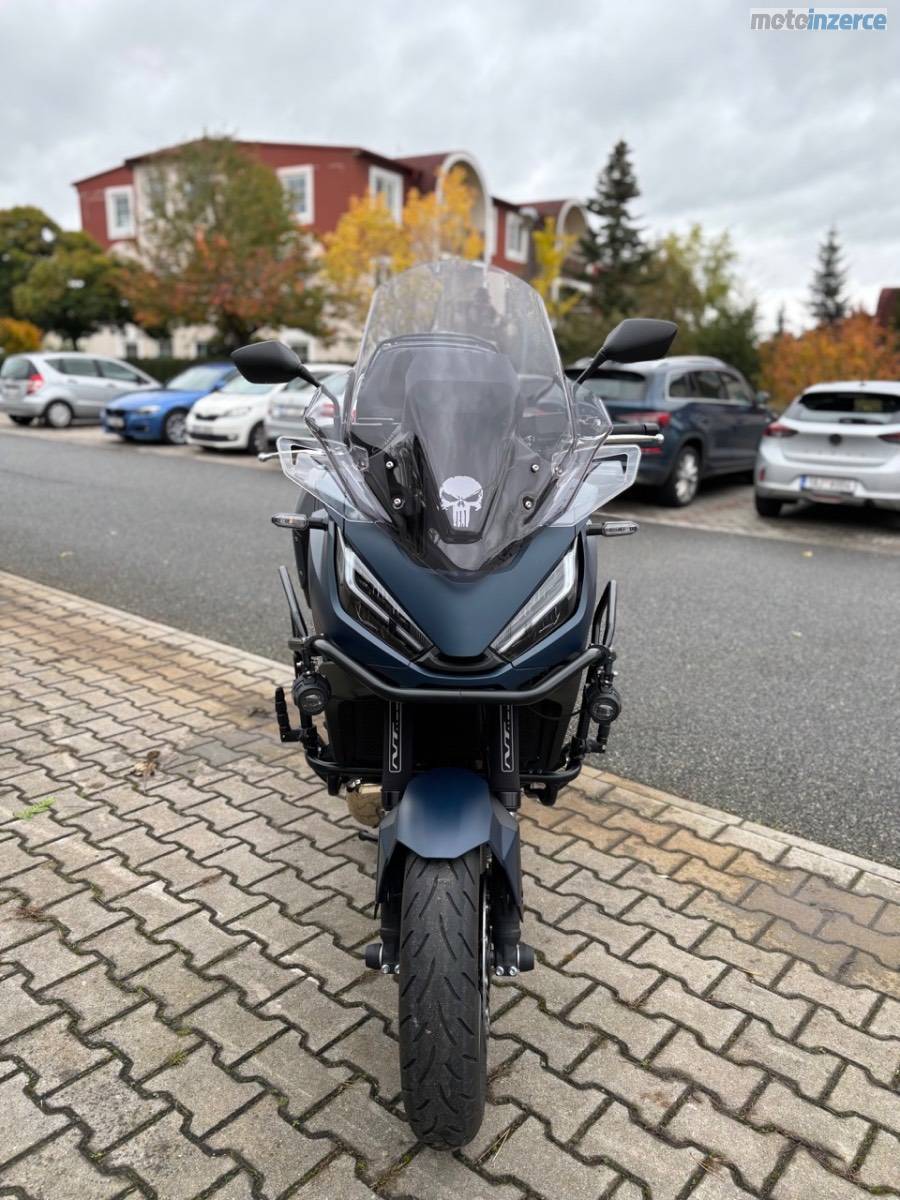 Cestovní moto Honda NT1100 DCT. Barva modrá (Matt Jeans Blue Metallic). 1. majitel, do provozu 04/2024, najeto 8800 km. Výborný stav, bez závad, pravidelný servis v MOTOLETY. Tovární záruka do 2030, STK do 04/2028.