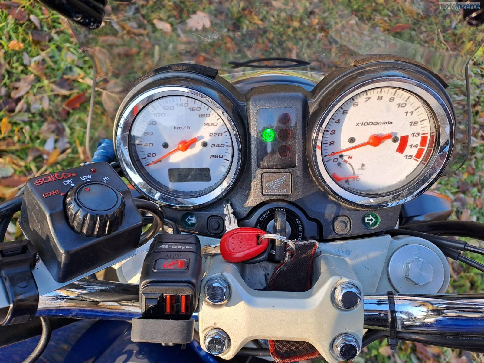 Nabízím spolehlivou motorku Honda CB 600f Hornet, r.v. 2003. Najeto necelých 55000 km. V ČR jsem první majitel, mám jí od r. 2006. Ve výbavě je kufr, držáky/podpěry brašen, vyhřívané rukojeti, USB zásuvka a mini plexi s nastavitelným deflektorem (bariéra vzduchu při použití tankvaku). K moto jsou dva originální klíče.