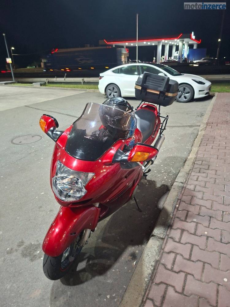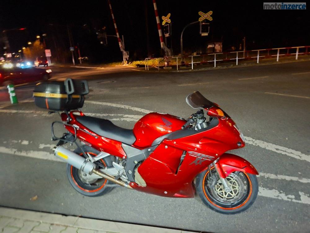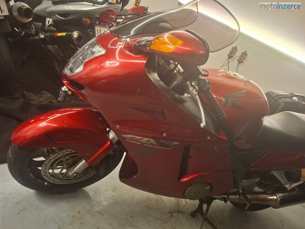 Prodám CBR 1100 XX, SC 35, r. v 1999, najeto 47 tis, 110 kW, dovoz DE, předchozí vlastník 77 let, vzorně jetý důchodcem, ani nechrastí rozvod okolo 4 tis, jako u ostatních. Nové náplně, olej, voda, nový vzduchový filtr, olejový, nová řetězovka DID super heavy duty 530 X2, v předu o zub menší kolo, vzadu o zub větší, zrepasované otevřené výfuky Arrow, komplet destičky BREMBO bílé, vyvýšené plexi MRA, sada 3 kufrů GIVI, světlomet komplet v LEDu, nové pneu Mitas Sport Force +, plus proužky na kolech, nová STK na 4 roky, prohlédnutá, vyčištěná a připravená na sezónu. Moto v super stavu, jen pár ďubek od kamínků. Mohu zaslat spoustu fotek servisu. Cena 100 000 Kč.