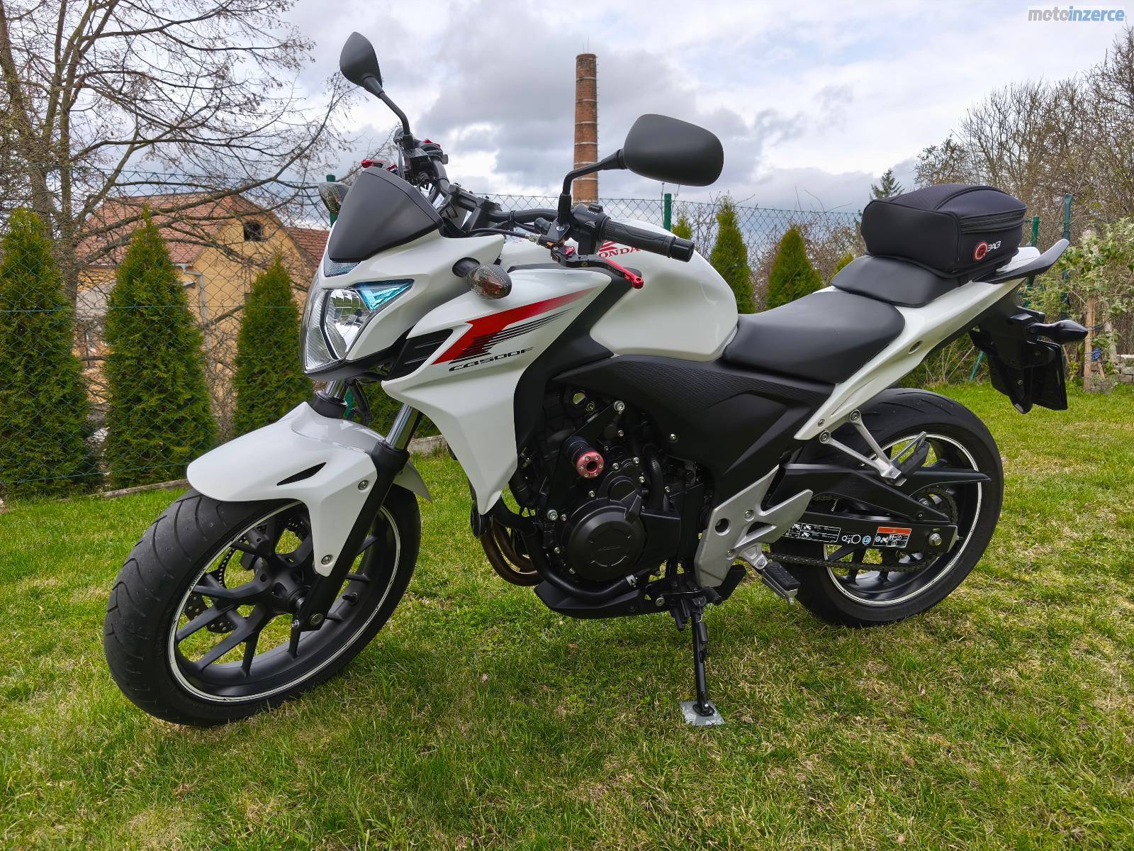 Prodám opečovávanou HONDU CB 500F, r.v. 2014, výkon 35 kW (ŘP A2), najeto 32.300 km. Koupená nová v ČR, ježděna manželkou výletovým tempem. Pravidelný servis, servisní knížka samozřejmostí. Nebouraná, vždy garážovaná ve vytápěné garáži, bez kosmetických vad. Pneu Z 90%, P – 50%, zánovní řetězovka, po výměně oleje (Motul 7100), brzdových desek a kapaliny. Všechen spotřebák OK, bez investic. Spotřeba 3,5l/100 km. Ukazatel zařazeného kvaltu GiPro, brašna na sedlo, dvoubodové padací rámy od Rutana, ABS, dva klíče. Krásný stav, jasné km. Lokalita Uherský Brod. Důvod prodeje – koupě nové motorky.