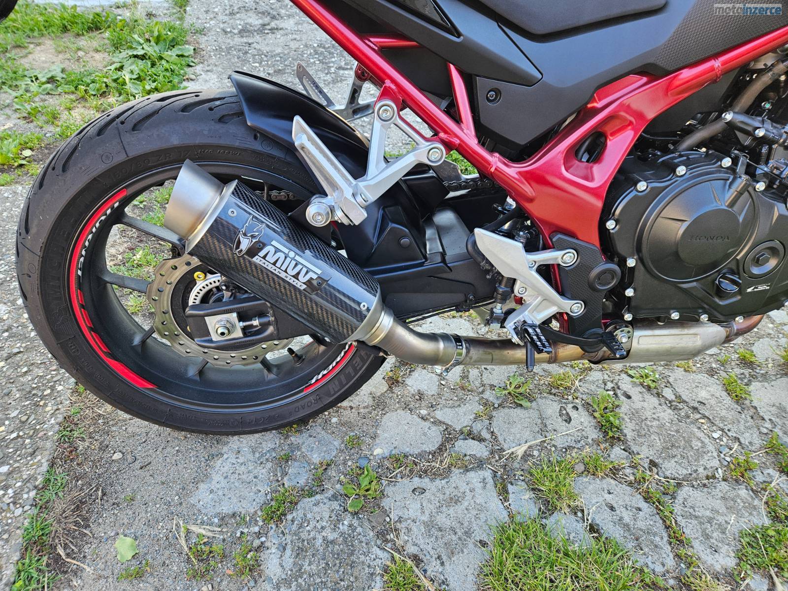 Vše origo Honda. Další dokoupené doplňky: zadní blatník Puig, držáky kufrů+ kufry (vrchní SHAD SH47),(boční SHAD E48SR), laděná koncovka výfuku MIVV GP PRO CARBON vč. homologace, držák na mobil.