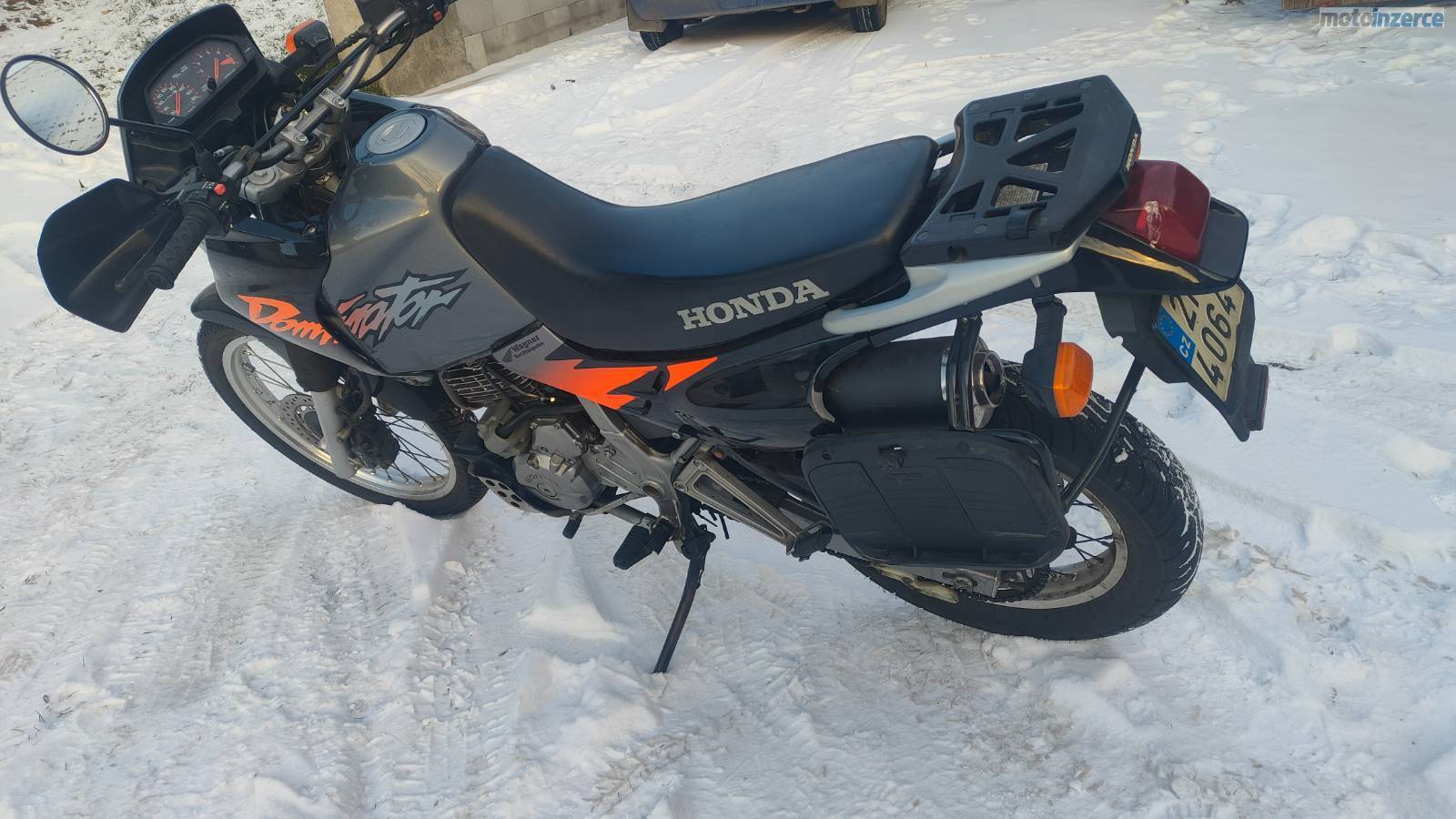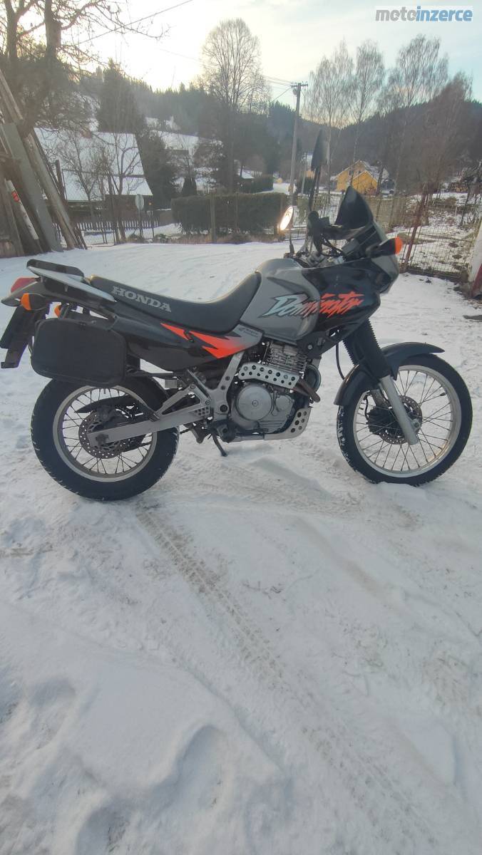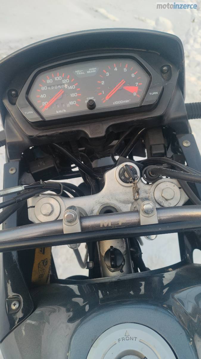 Prodám Honda RD 08 Dominator, r.v. 1997, obsah 650, výkon 25 kW, najeto 52.050 km, TK do 10/2024, silniční pěkné pneumatiky, jinak stav jak jsou fotografie. Jsou k ní dva zamykací kufry. Je tak, jak jsem jí v roce 2020 koupil (stav při koupi 51.517 km), ale není čas jezdit. Každý rok jsem udělal olej, filtr, od roku 2023 ujela 200 300 km, jinak stála, proto jsem už ani technickou nedělal. Cena 38.000, Kč.