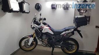 Přídavné reflektory Touratech, hliníková ochrana motoru Touratech, ochranné rámy Touratech, cestovní plexi Honda, hlavní stojan Honda, tankvak