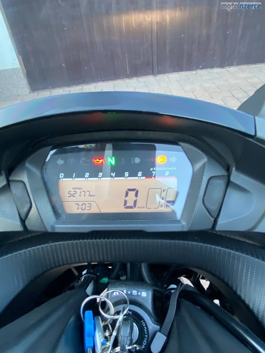 Najeto 55.000, r.v. 2014, dovoz ze SRN 2018 (v SRN měl první majitel ročník 1959). Velmi dobrý stav, naprosto spolehlivá, sedlo Shad mnohem pohodlnější, spotřeba 3,5 l dlouhodobě, startuje na cvrknutí, výměny oleje v intervalu ještě kratším než předepsáno, vč. DCT filtru, svíček, značková baterie, vyhřívané rukojeti kvalitní Oxford. Destičky Brembo, nedávno na podzim 2025 nová přední pneu (viz foto na konci). Pouze drobné oděrky. Kufr není součástí, ale samozřejmě nosič zůstane na moto. Důvod prodeje: koupě rekreační nemovitosti, nutnost shromáždit všechny finance -(((