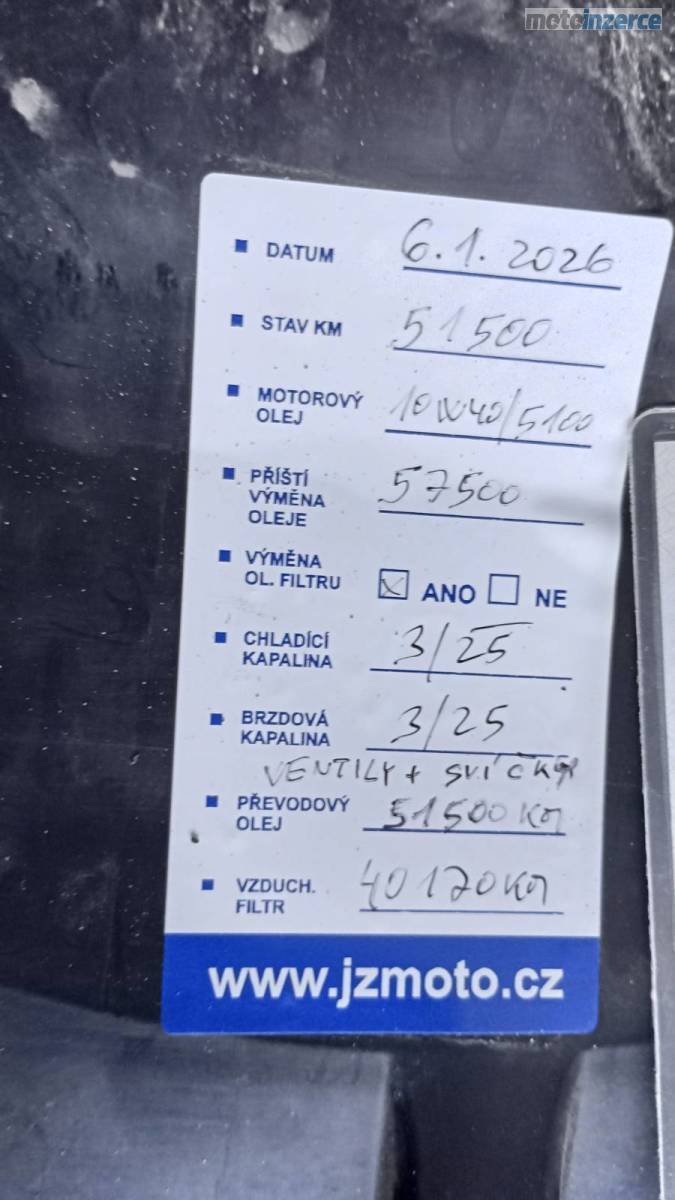 Prodám Honda Hornet CB 600F, r.v. 2011, černá metalíza, 75 kW, najeto 51518 km, STK 02/2027, pravidelně servisovaná, poslední servis 01/2026, včetně seřízení ventilů a nových svíček. Připravena na sezónu, stačí nasednout a jet, bez poškození, jen drobný škráb, viz foto. Gumy Metzeler,(08/2025 obuté) najeto cca 2000 km. Doplňky Baracuda design. Držák s plotnou a kufr. 2x klíč. Praha.
