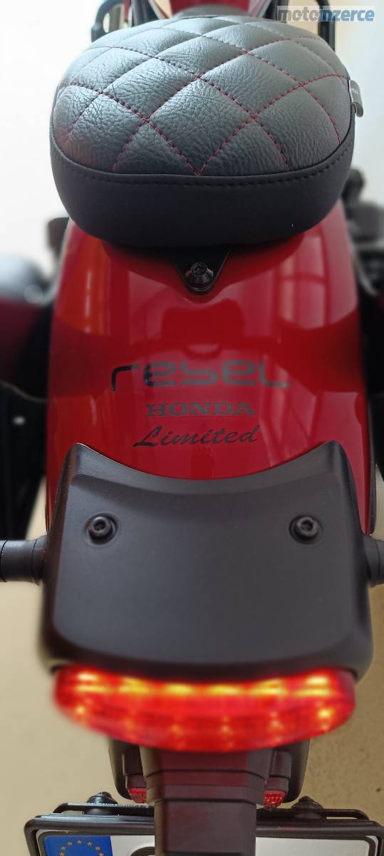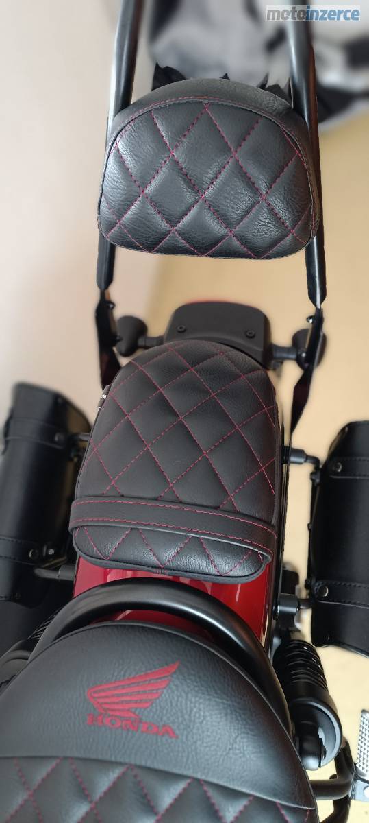 • Custom sedla: Na zakázku ušité sedlo řidiče, spolujezdce i opěrka s luxusním diamantovým prošíváním a logem HONDA.