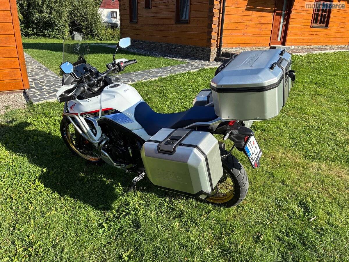 Nabízím k prodeji Transalpa koupeného v květnu 2025 v Honda Fomi Frýdek-Místek. V 800 km byl provedený garanční servis. Původní cena včetně originálního příslušenství namontovaného v Hondě byla 315 000 CZK, z toho originální výbava za cca 65 000 CZK: adventure sada (trubkový rám, mřížka chladiče, mlhová světla), rally sada (kryt motoru, trubkový kryt motoru, quickshifter, kryt rukojetí, rally stupačky), hlavní stojan, vyhřívané rukojeti, vyšší plexi, kapotažový deflektor, deflektor plexi a 12V zásuvka. K motorce sada tři hliníkových kufrů Shad + tankvak. Boční kufry mají vnitřní brašny, p. c. cca 40 000 CZK. Dále navigace TomTom, p. c. 8 000 CZK. Cena motorky s kufry a navigací 295 000 CZK