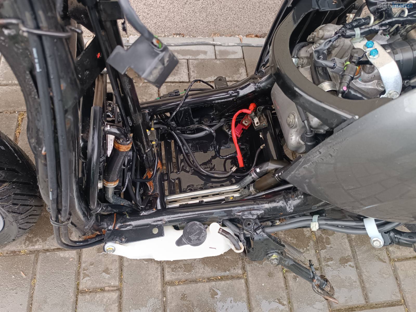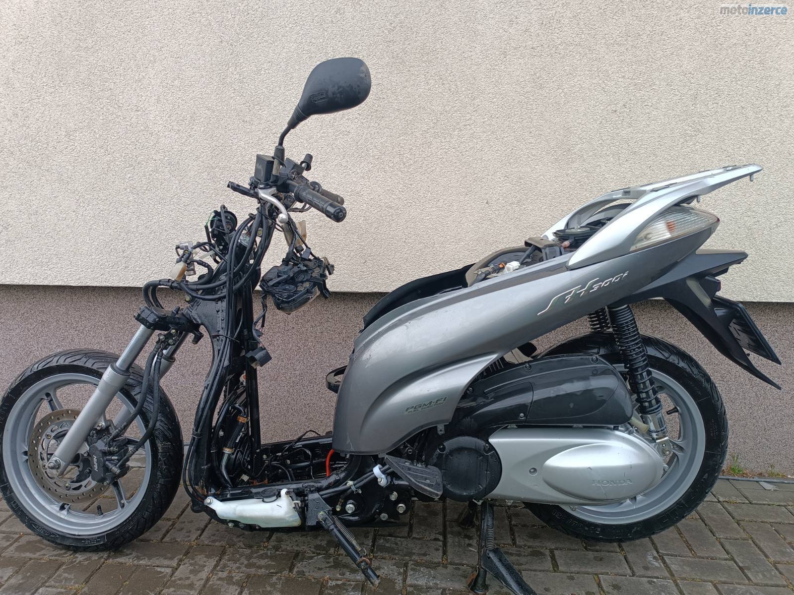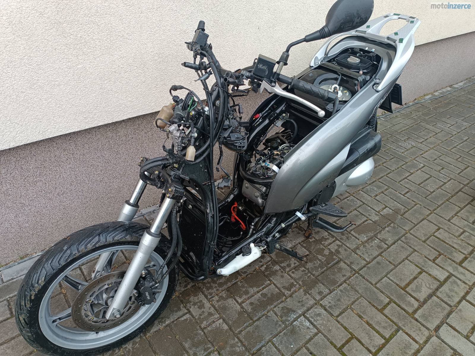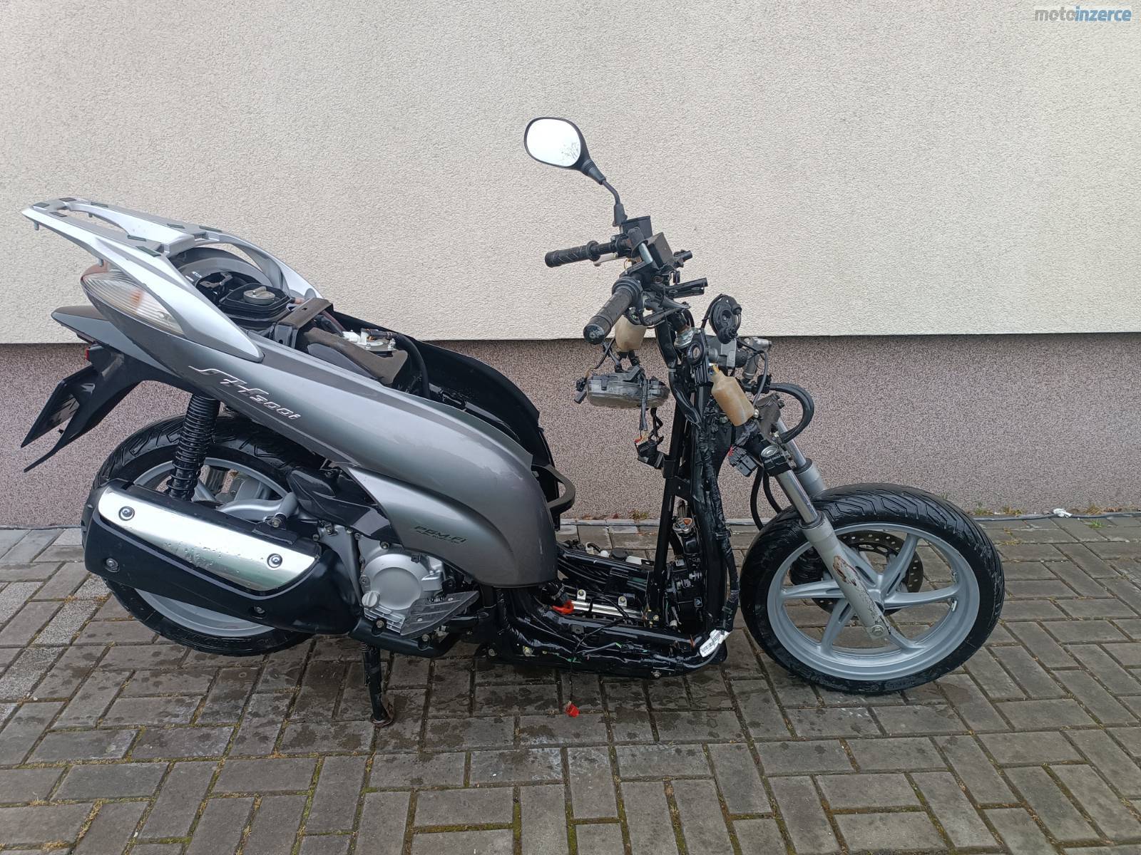 Prodám Honda SH 300 2010 najeto 10 tKm, skutr má doklady, TP + SPZ, havarováno na předek (rám KO, vidle a př. kolo vypadají OK), následně kompletně zaplaveno při povodni. Aktuálně stav viz. foto – umyto. Vhodné jako zdroj ND – prodám ideálně komplet tak jak je nebo v případě požadavku jednotlivé díly z tohoto stroje (ceny dohodou – rozumné). Díly mohu zaslat PPL nebo Zásilkovna. Pokud by byl o nějaký díl zájem ozvěte se. Díly mohou být stejné s Honda SH 125 nebo Honda SH 150. Tel: 778733745