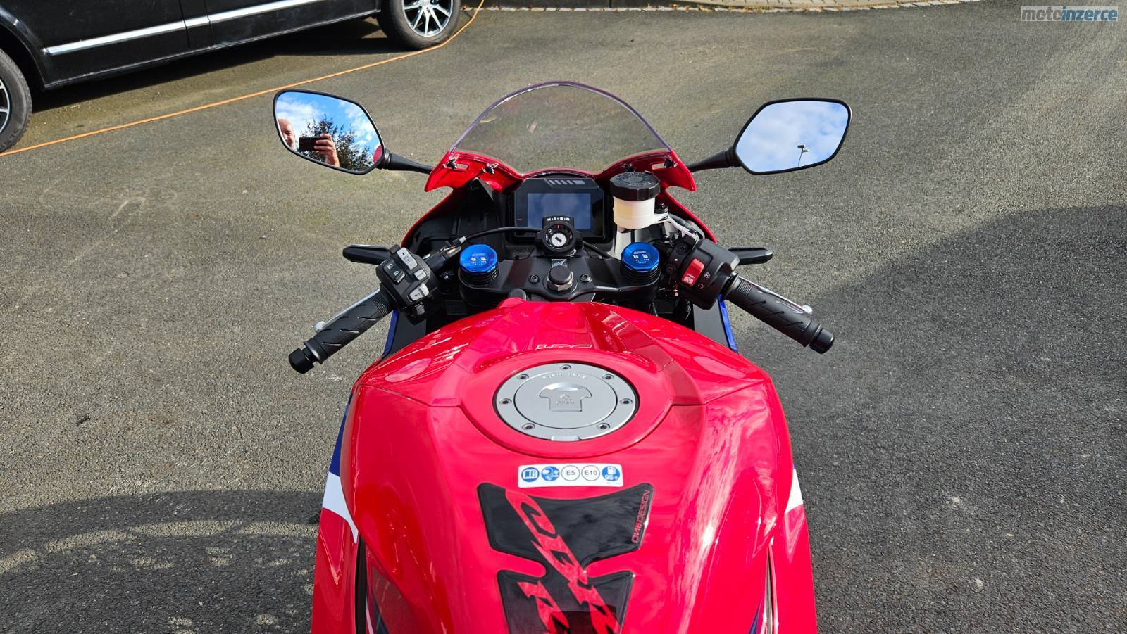 Prodám Honda CBR 600 RR, rok výroby 2024, najeto 1 458 km, do srpna v záruce, servisováno v Honda Plzeň, lehká oděrka na levé kapotě.