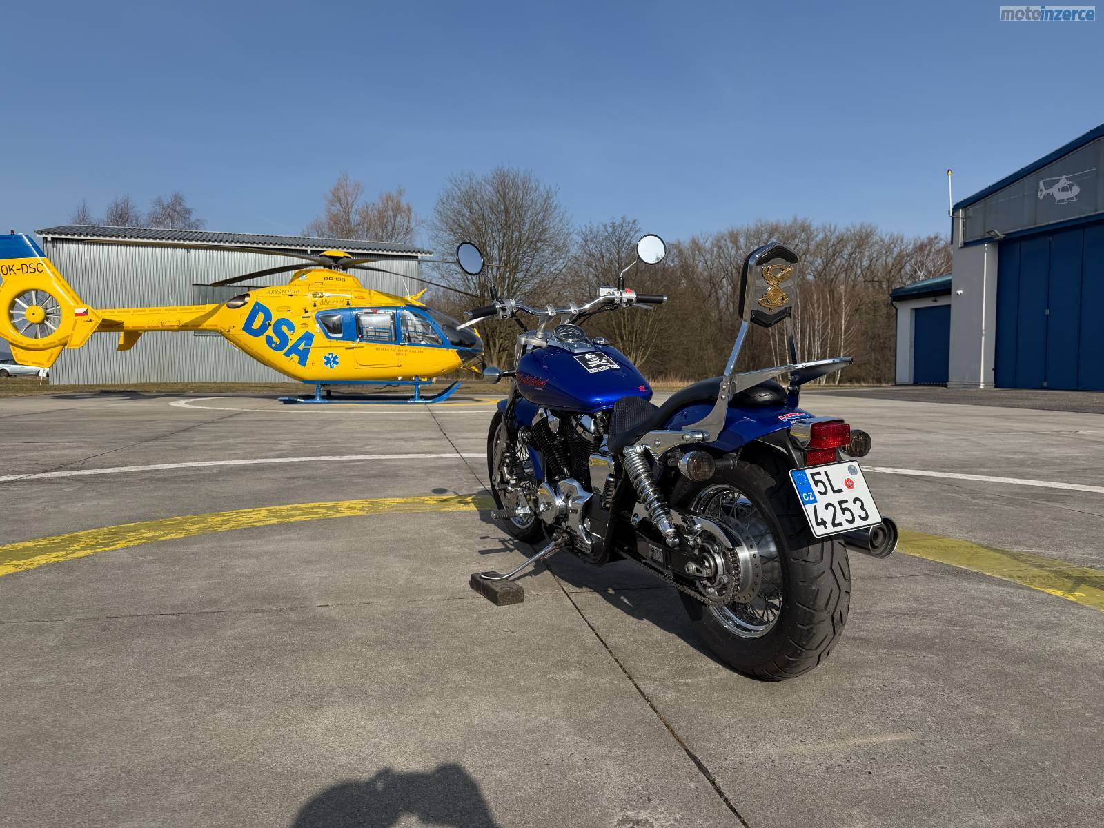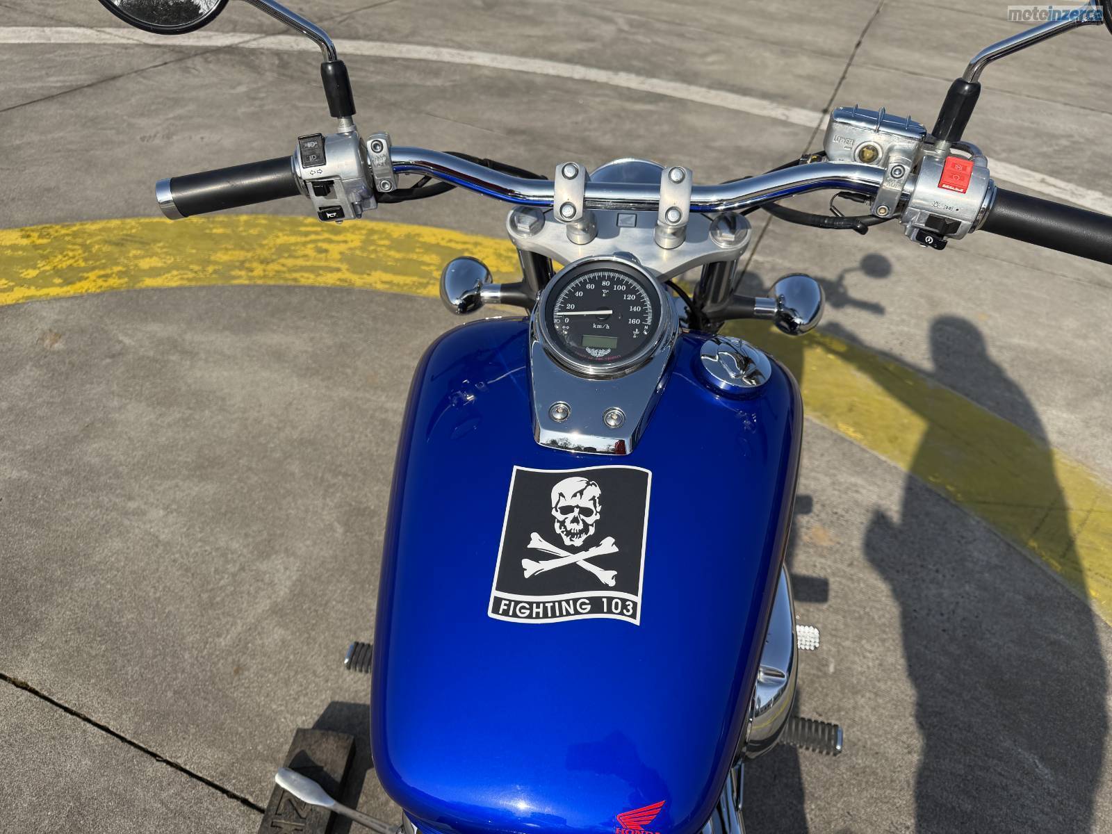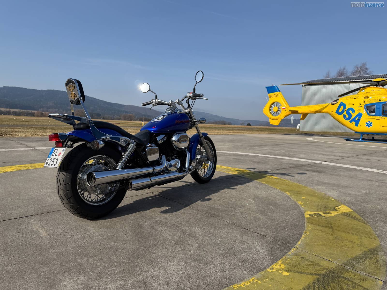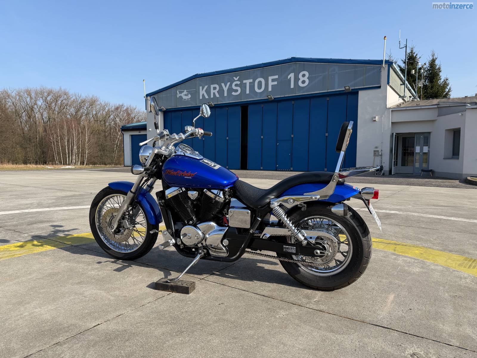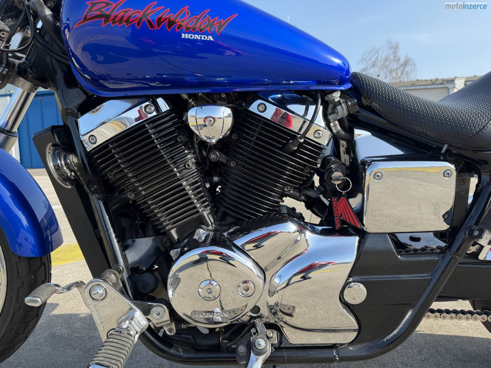 Jsem sice Černá vdova, ale jinak jsem krásně modrá. A takových je nás málo. První registraci jsem dostala ve slunné Itálii v roce 2004 a koncem roku 2021 jsem se přestěhovala do Česka. V létě 2022 si mne vyhlédl můj nový pán z Liberce a ten si mne od té doby hýčkal. Pracuje u vrtulníku záchranky a trpí, pokud něco není na jeho technice v pořádku nebo to není hezké. Takže jsem dostala záhy nové sedlo z mé domovské Itálie, obě nové pneumatiky, 4 nové svíčky, novou řetězovou sadu nový brzdový kotouč, destičky i brzdovku, chladící kapalinu a pravidelně mi mění olej a filtry. Jsem pořád naleštěná a seřízená jako švýcarské hodinky. Mám moc hezké chromy i na ráfcích, jsem čistá, nedělám moc rámus a jezdím jen na stovkový benzín. Mám v kaslíku pod sedlem nářadí od Hondy a několik klíčů. Můj pán na mě nemá moc čas, protože buď někde lítá a nebo je u vrtulníku. A teď si pacholek pořídil VTX 1300 a rozhodl se mě nabídnout… tak se mi ozvěte a přijeďte se na mě kouknout. Třeba budete překvapeni, jak hezká jsem, a koupíte mě, jako kdysi ten můj. Nejsem úplně nejlevnější, ale myslím, že stojím za to…