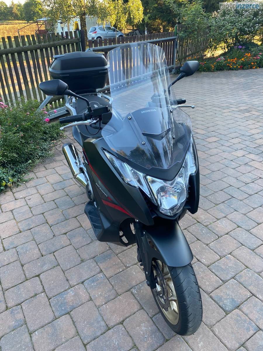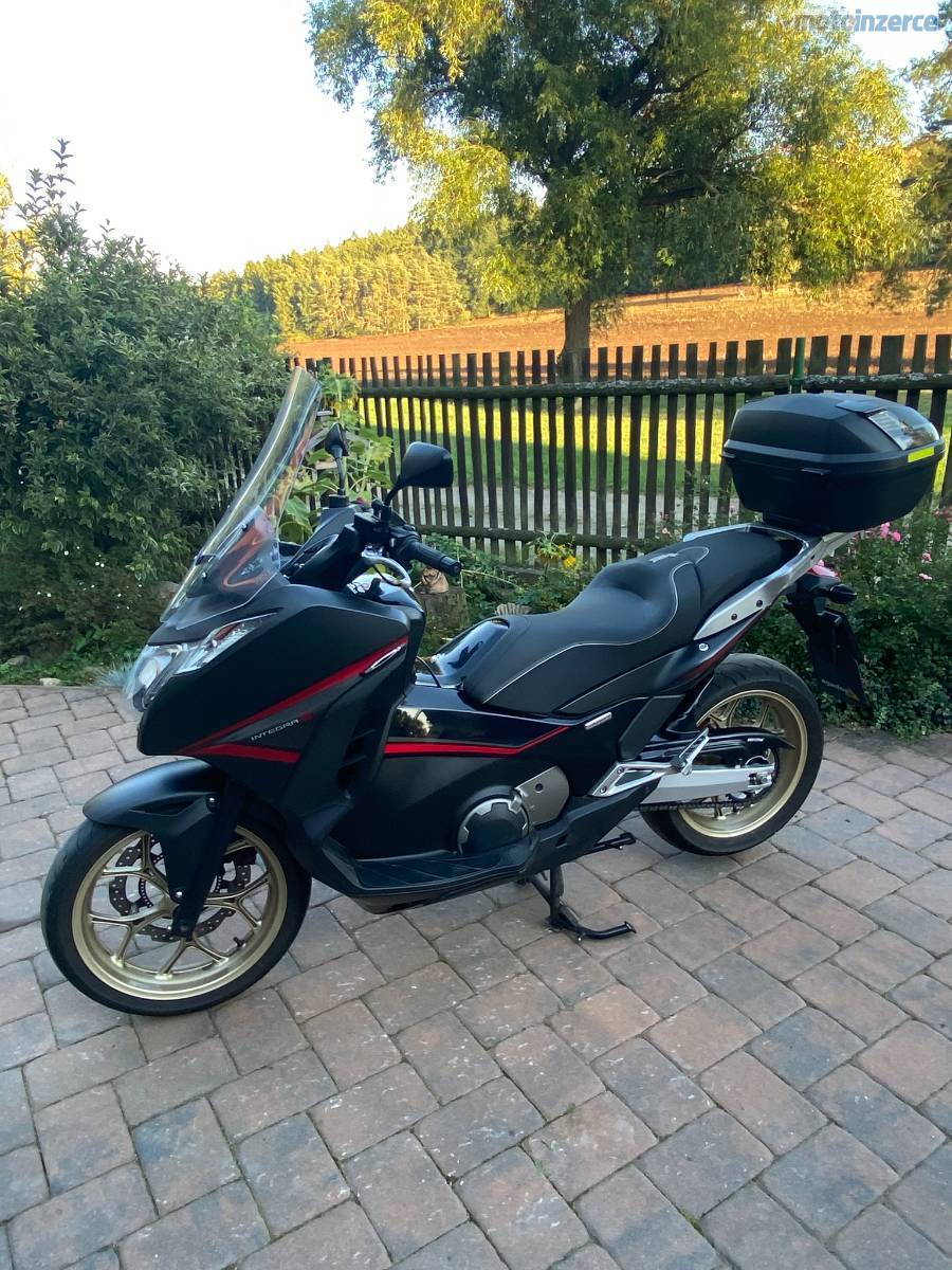 Prodám Honda Integra 750 DCT 2014, najeto 54.500 km, dovoz SRN v 2016, ručím za stav km, majitel v SRN starší ročník, vyhřívané rukojeti Oxford, celou dobu u mě poctivý servis (výměny oleje vč. filtru a filtru DCT), destičky Brembo, přídavný zadní blatník, zánovní baterie, na podzim 2025 nové přední pneu, spotřeba 3,5 l. Technicky perfektní, pouze minimální kosmetické vady. Důvod prodeje: koupě nové moto.